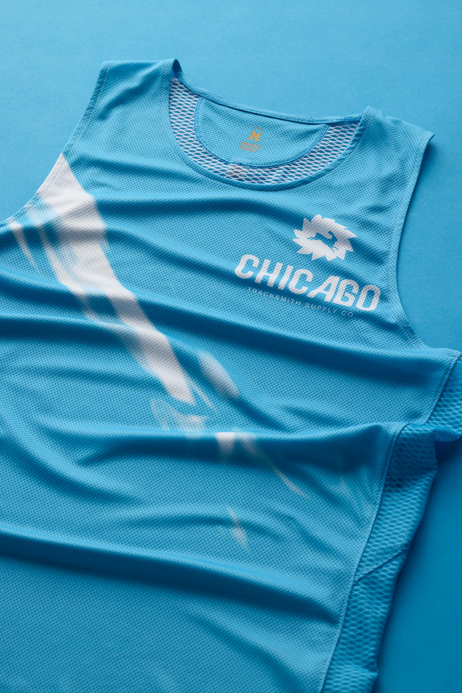 A performance mesh singlet designed for marathon race day in Chicago ‘25.