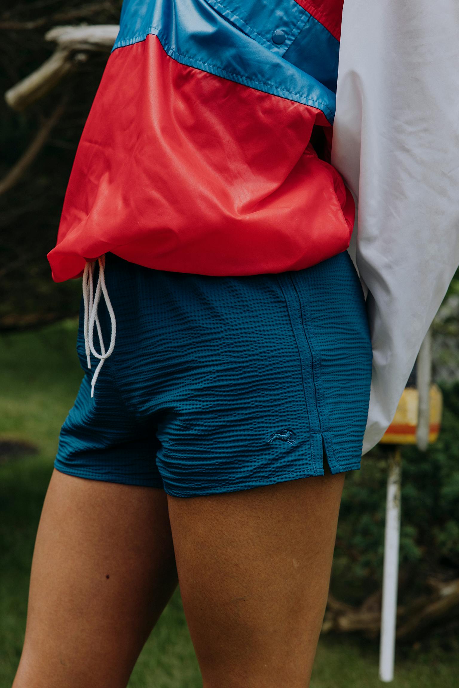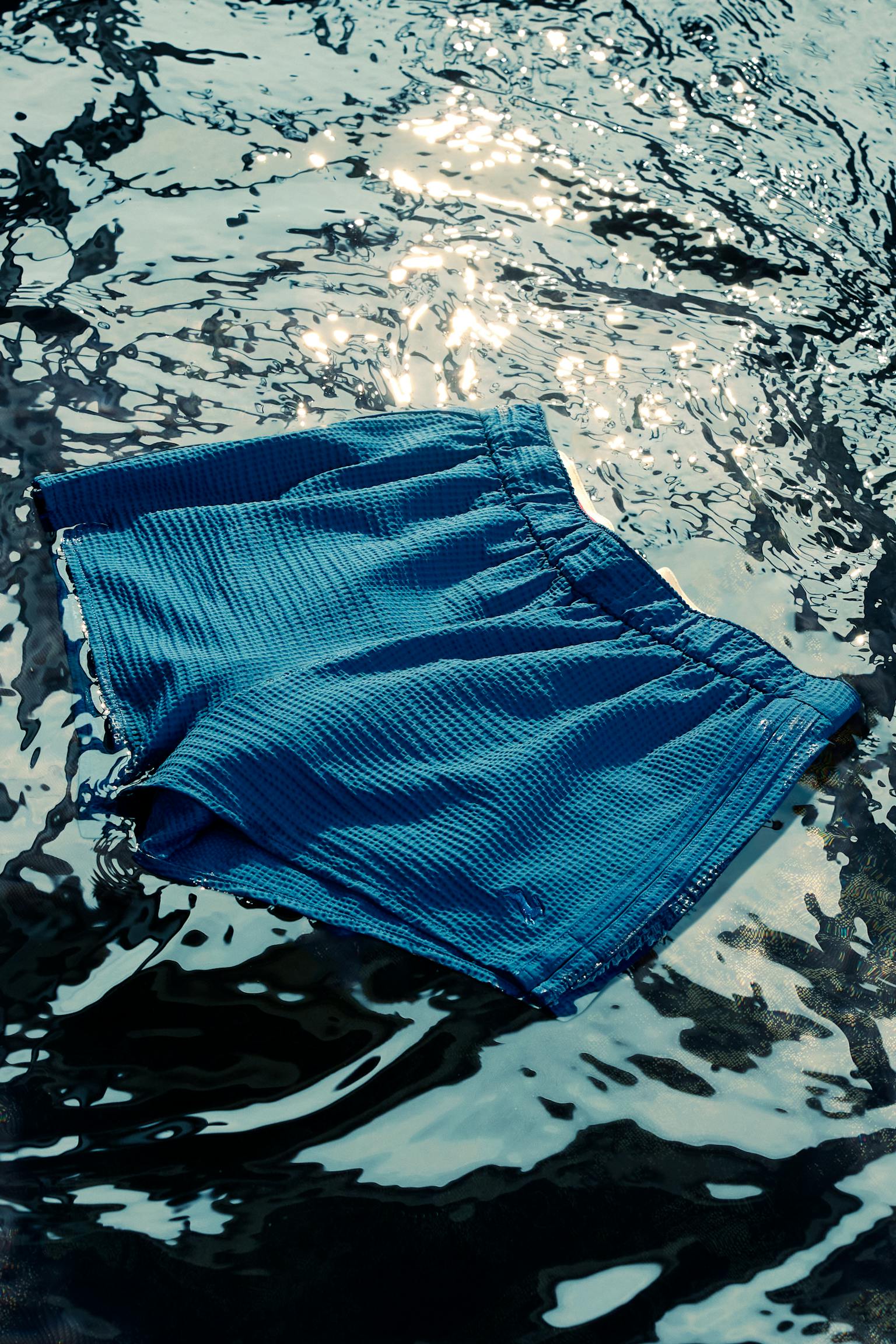 Swim-friendly running shorts made from a quick-drying, high-stretch seersucker with a secure zip pocket.