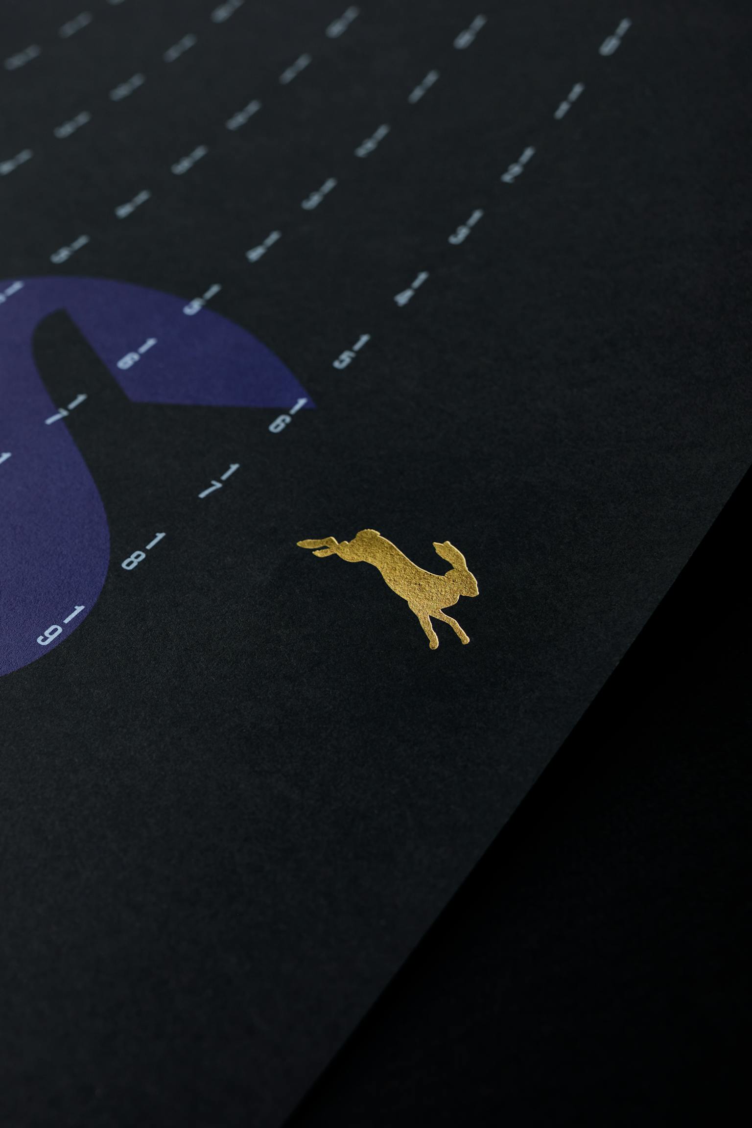 - 24” x 36” Screen-Printed Poster With Blue Gloss, White Matte and Gold Foil Print