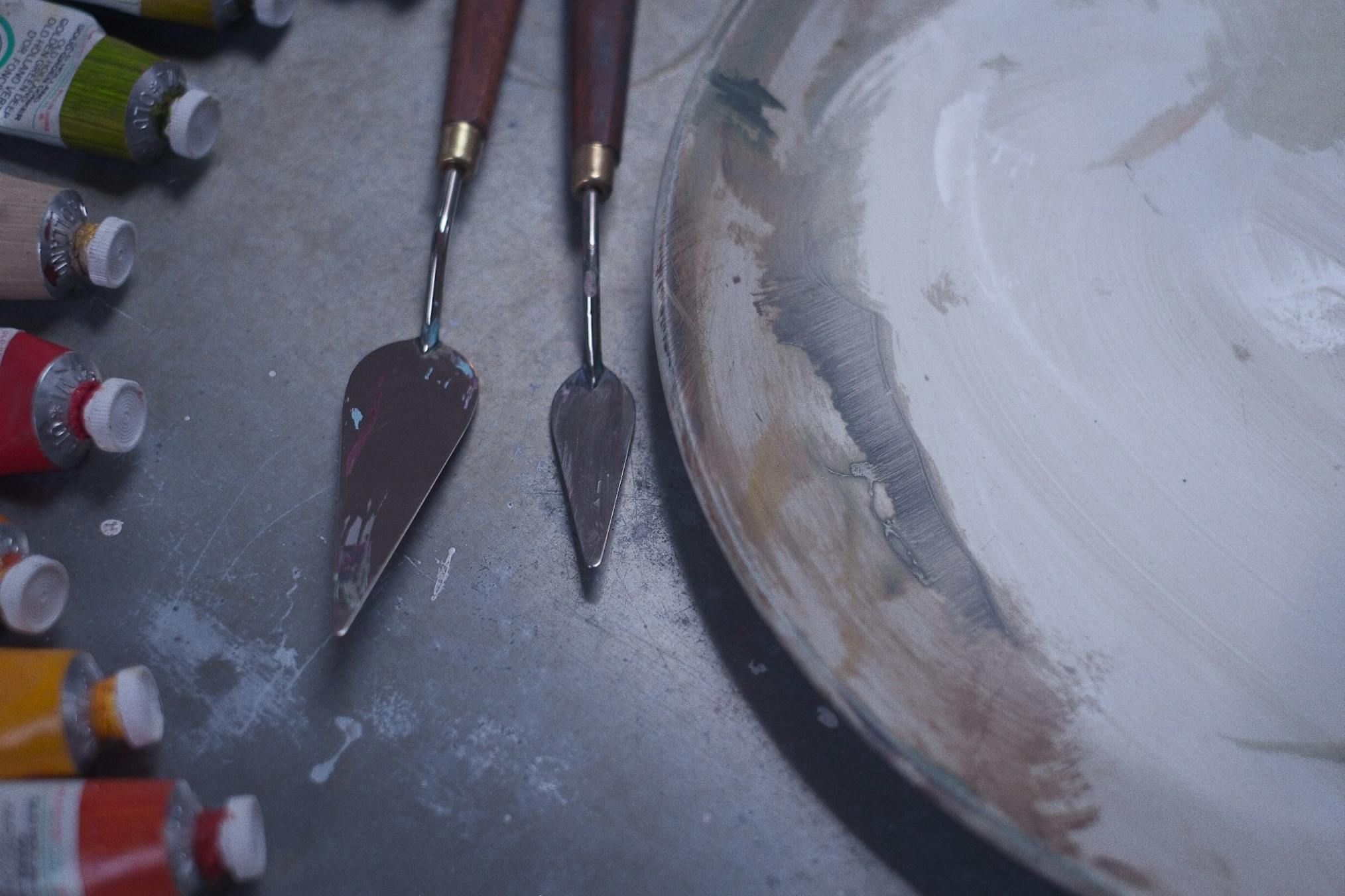 You look at a painting and I think I’m trying to portray a feeling, and I’m trying to create a feeling in the viewer when they look at it. They’re very different things. Tattooing is exacting, incredibly precise, and there’s not a lot of room for creativity during the process: all the creativity is done prior – you make all the decisions and then you sit down and execute it. The thrill for me with painting is that I can do something that is the absolute opposite of tattooing. It’s all about mark making, it’s totally changeable and I’m answerable to nobody. The only person I need to satisfy is myself. Whether I can make a career out of it I don’t know, but I have faith in my idea of taste and style and aesthetic decisions, and I ask myself, 'is that a painting I would like on my wall?' Ultimately, that’s why I paint: I can’t afford paintings so I want to paint the stuff that I have in my house and if I like it, hopefully other people will too.