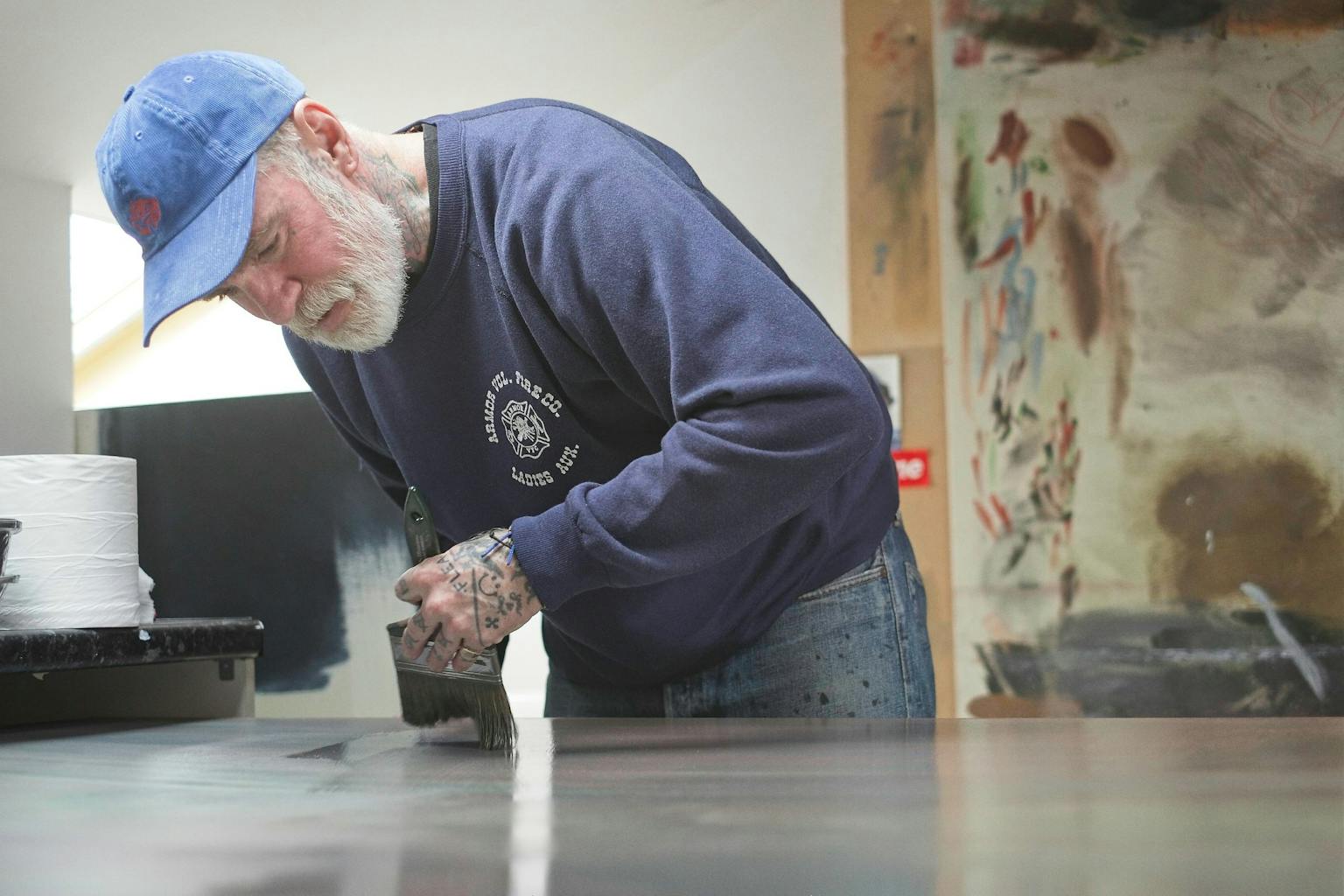 When Covid hit and lockdowns were imposed, Miles found himself locked out of the studio for 13 months. The break was tough, but it allowed him the opportunity of time, first to cement a newly rekindled relationship with running, and second to rediscover his first creative love: painting.