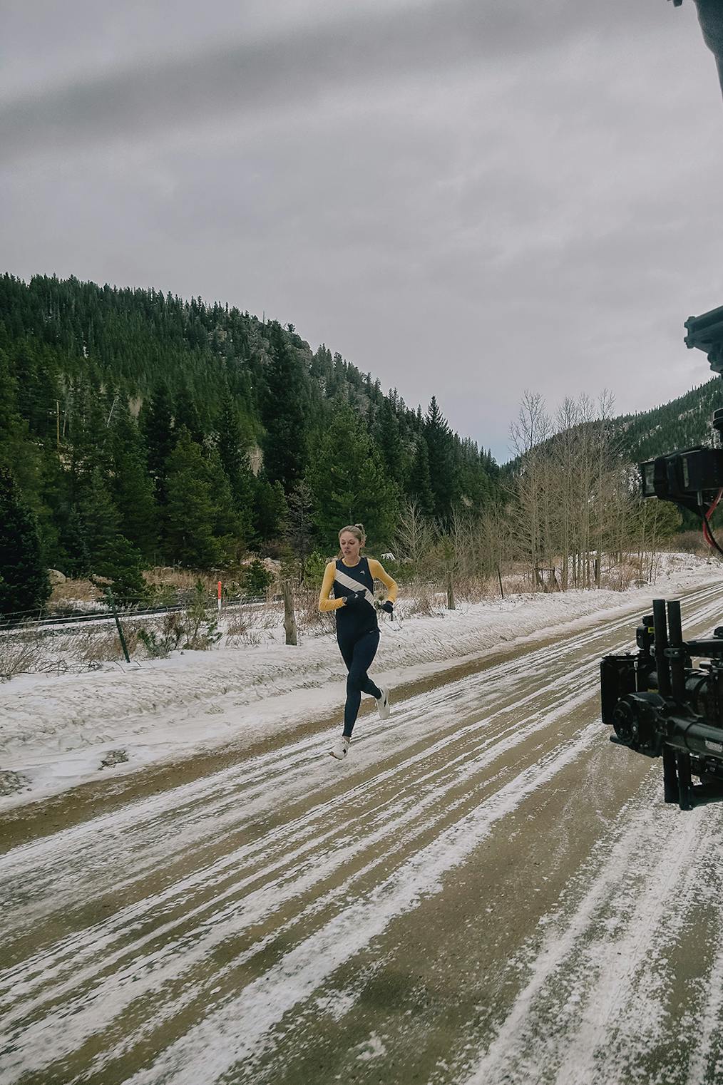 EM: From a theatrical standpoint, there were a lot of unique aspects that we observed by taking on this project. It became about patience. There’s such a long period of time that goes by, and you don’t want to show everything at once with a bunch of quick camera moves. We wanted to show her going on the run with as few interruptions as possible, but we also wanted to be able to give something to the viewer that provides some context for where she is and what she’s doing. So we first start by seeing her, by leading her with the camera through space. And then as we have a cut, we reveal the 180-degree perspective of what she sees out in the world. It gives the viewer a unique sense of her environment. It's not about the speed that she's running or about anything heroic that she's doing. It's about the fact that she's slowly ticking off these miles while moving through space. That really struck me as a way of experiencing the outdoors and through the entirety of the run. I knew that it could be interesting, but as it all started to come together, that sense of distance covered became a very powerful component of the film.