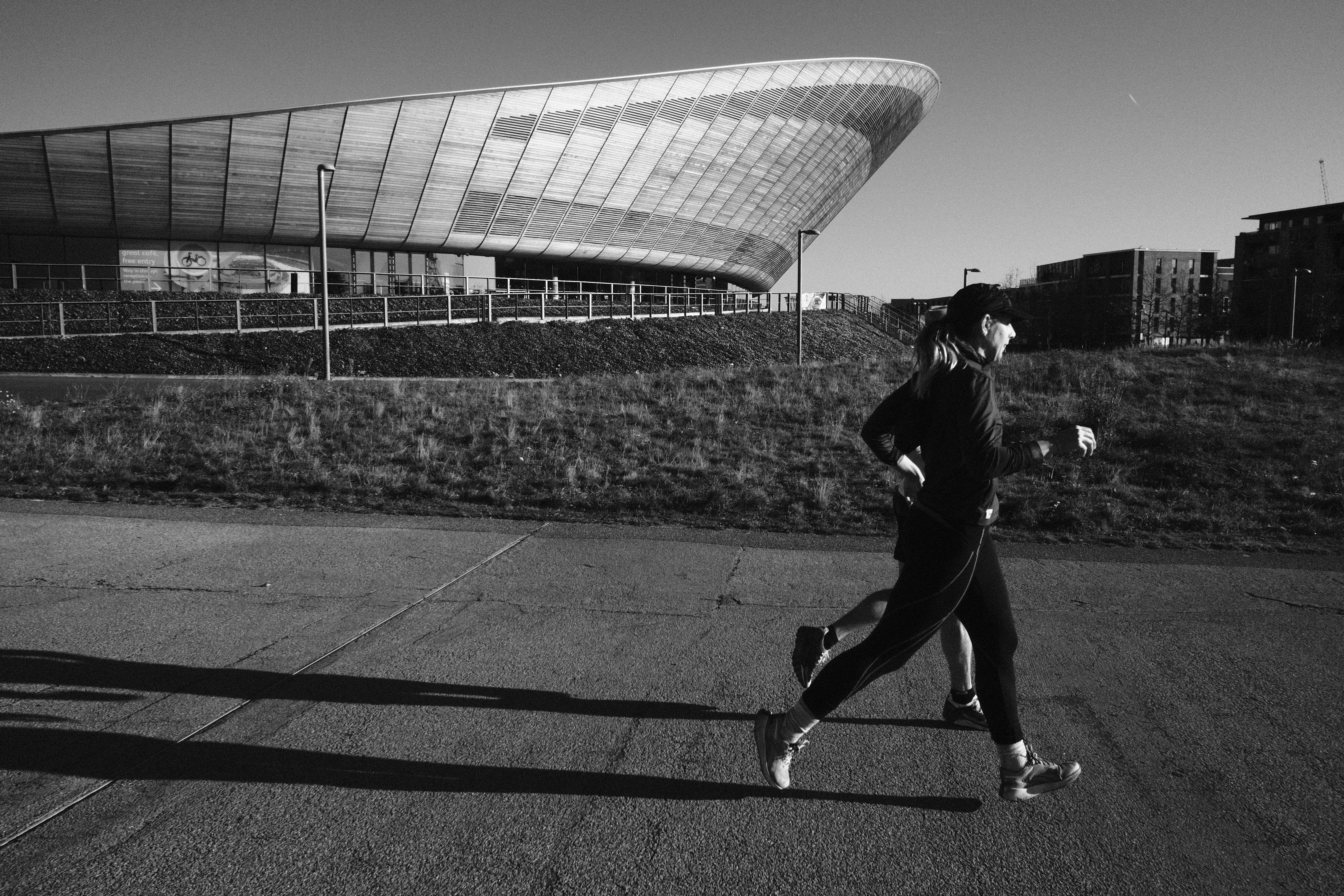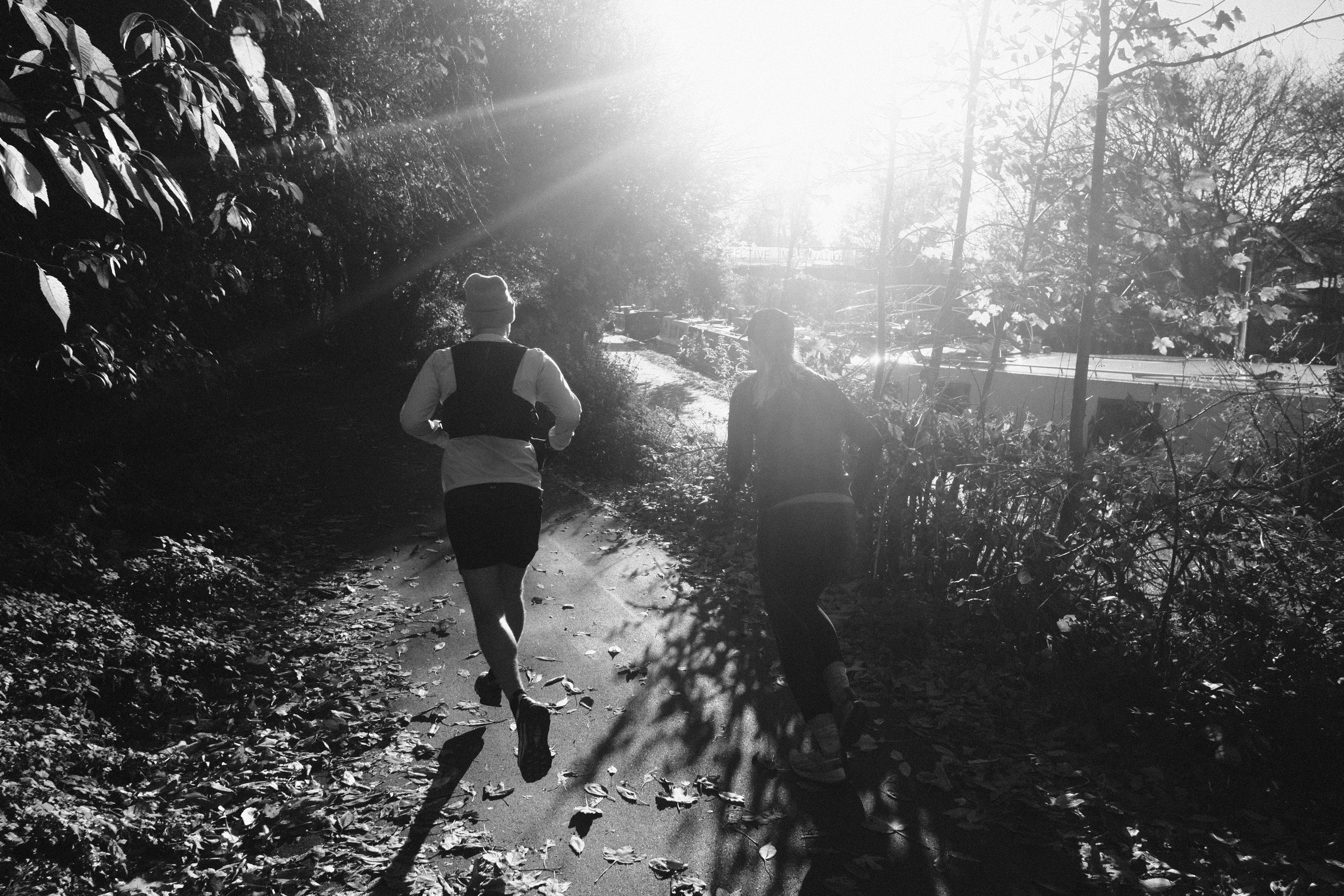 Our paths finally merged on Hackney Marshes. Scattered with goalposts and pitch markings, this hub of Sunday-League soccer glory just so happens to offer a great paved stretch ideal for workouts, as well as endless dirt that is dreamy for easy jogging (except when the mud thickens in the rain). Throughout summer 2020, there were blissful scenes of young Londoners enjoying the River Lea as it flows through the trees here. I was told it was because that summer felt so different - so claustrophobic and paranoid - that the freedom offered by the polluted water was worth the risk. But on this winter morning the Marshes were peaceful, dotted only with dog walkers and runners.