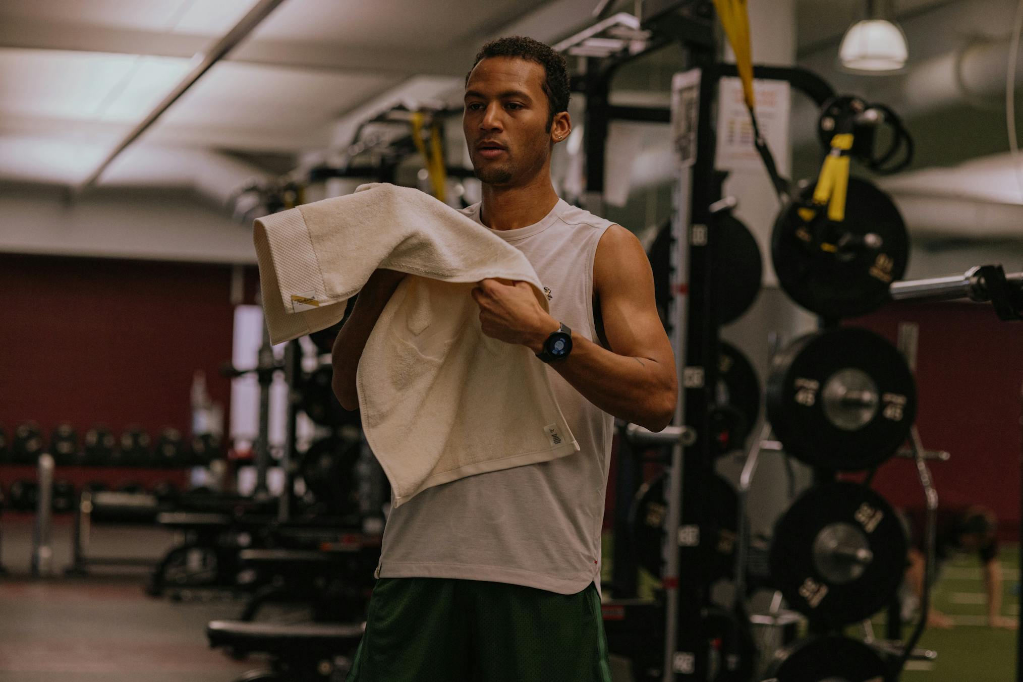 - Gym towel for wiping away sweat and drying equipment