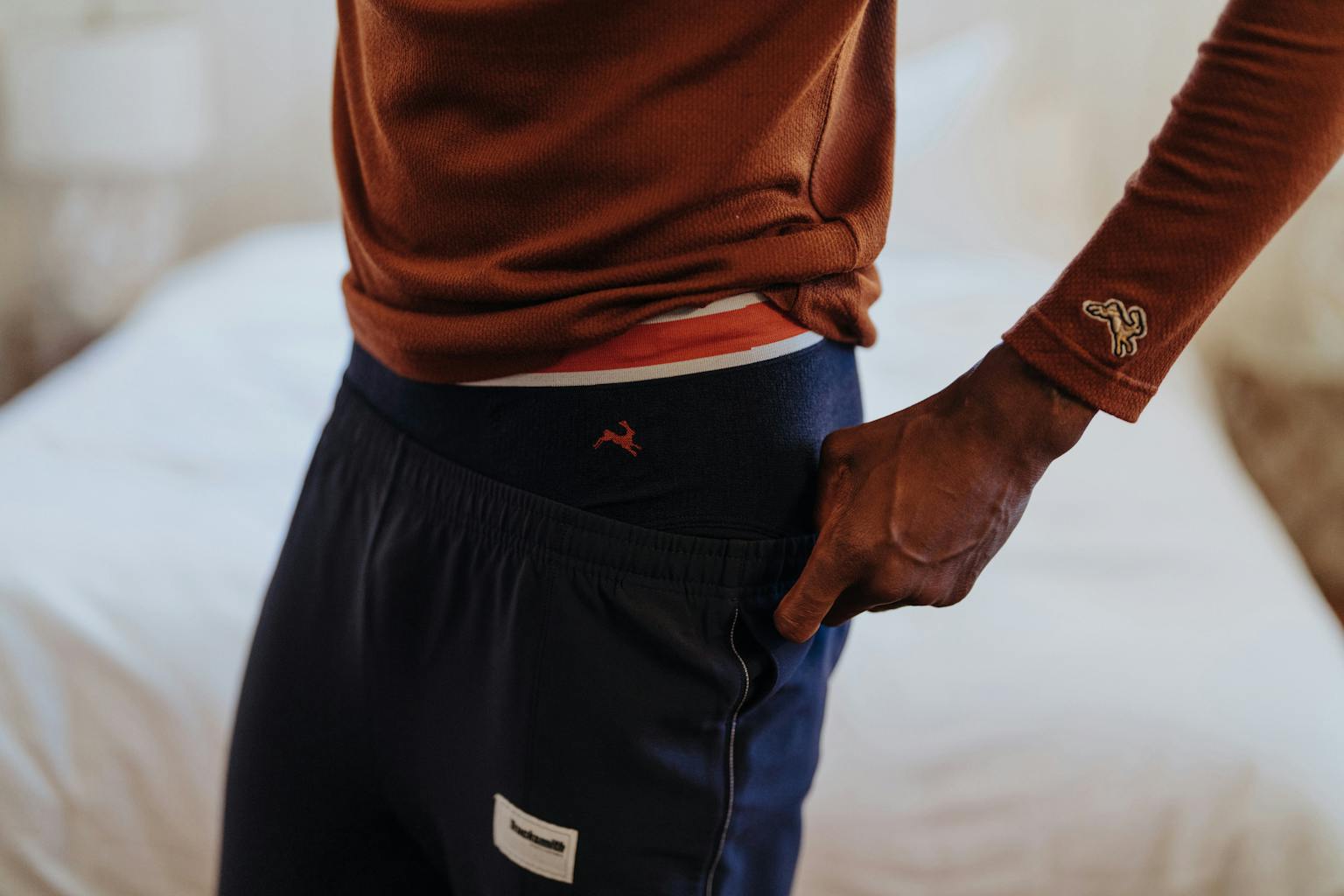If you're still not familiar with the performance benefits of Merino wool, be prepared for a revelation. Stunningly soft and not at all scratchy, Merino wicks moisture and regulates temperature just like animal hair (because it sort of is). It's almost completely impervious to odor. And it's sustainable, too. For our underwear, we used a super-fine micron Merino with 83% wool, 12% nylon and 5% elastane.
