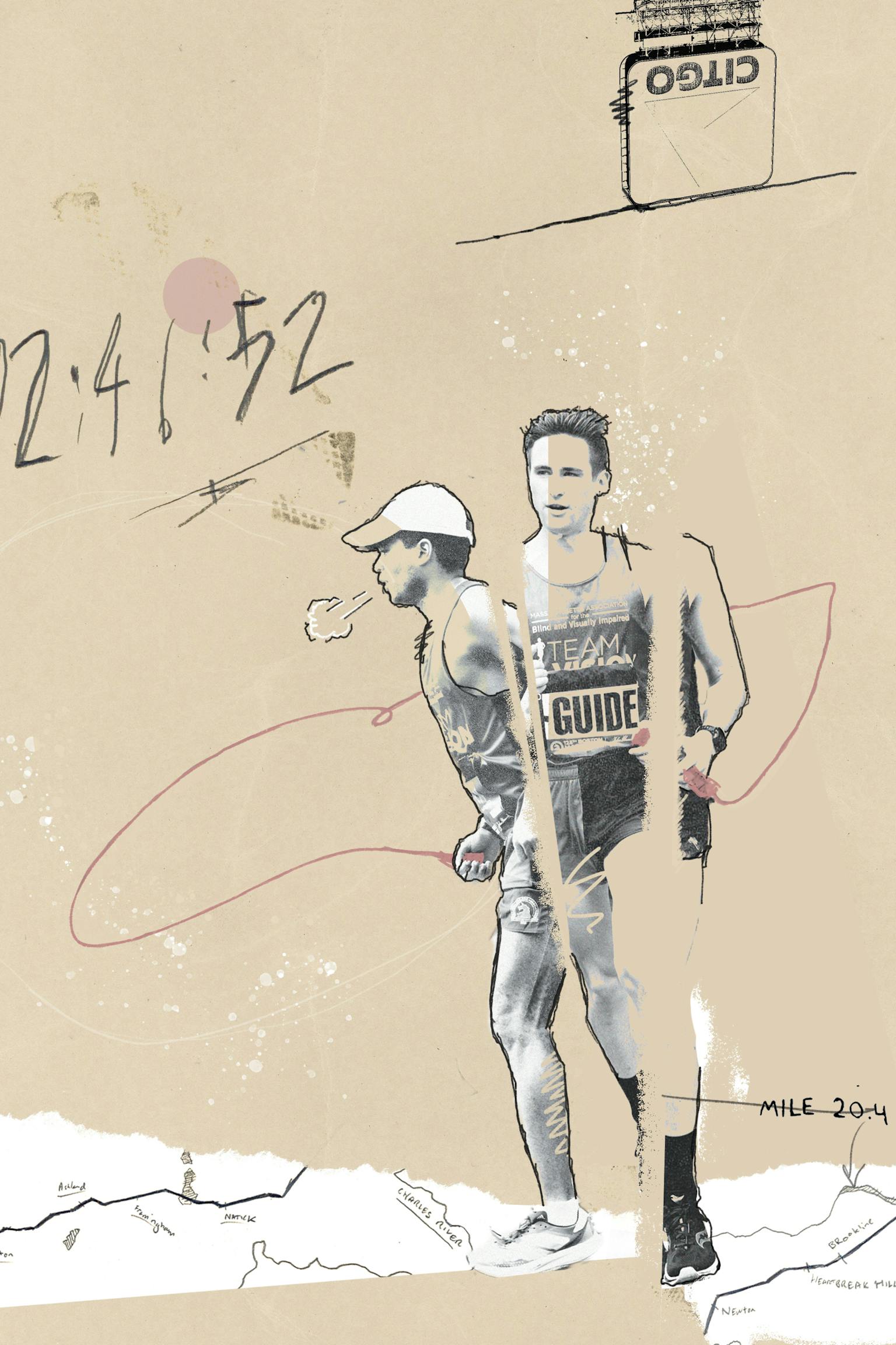 Jeff: Terrifying and inspiring. Just a lot. I jumped in at mile 12 and checked in with Chaz to hear where he was at. My mind, initially, went to picturing myself running on a sprained ankle (which is painful and terrifying enough), then I thought about racing on a sprained ankle, and then being not even halfway into a marathon on a sprained ankle. I’d check in at various challenging moments when we’d hit a bad step and stop for a second to adjust his ankle and he’d say how much pain he was in, but he had this will to keep going because it was such an important moment in the history of the marathon. Wildly special to be a small part of that. I had to make sure I did my part to make sure he was on course to meet his goals. I was like, “Let me know if I'm not talking enough, or talking too much or just annoying you.”