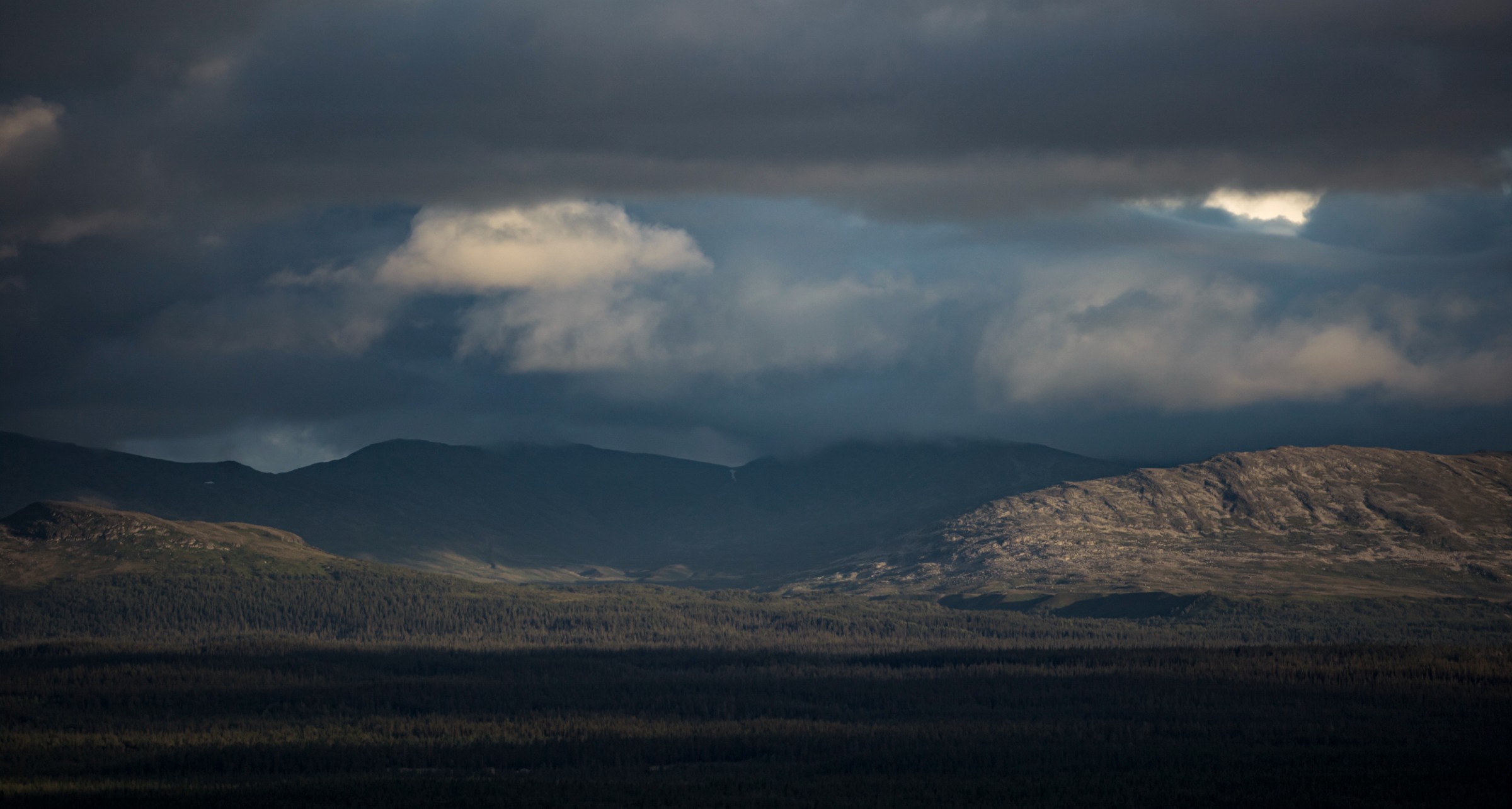 Väder [vạ̈:der] – Omnipresent on the fjälls. When you are this far north, the weather rules everything, and it can change in the blink of an eye. A location that lives up to the cliché of all seasons in a few hours. This interacts with the people making them seem hardier than others in Europe. If the weather is good, they make the most of it. If the weather is bad, they will be outside regardless. Sure, some preparation and awareness of the dangers of bad conditions are needed, but coping is more about mindset than anything else. This is not a battle with the elements, but a cohabitation, where weather is celebrated with the simple pleasure and joy of being able to be outside in it. How the weather interacts with the landscape is how you hear and see it. The ever-changing light affects your perception of the fjälls in the distance. Certain colours or shapes are highlighted as the clouds change the light. Listen for the sound of the rain in the forest, beating down through the thick canopy of leaves, the drops almost sounding bigger. The variety in sounds creates an embracing symphony, an acoustic representation of the world surrounding you, with each surface and angle playing its part. Underfoot conditions soon change. The waterlogged ground turns softer, pathways turn into small streams, your foot strike rings as it comes into contact first with the water, then the typical low thud as it hits the ground.