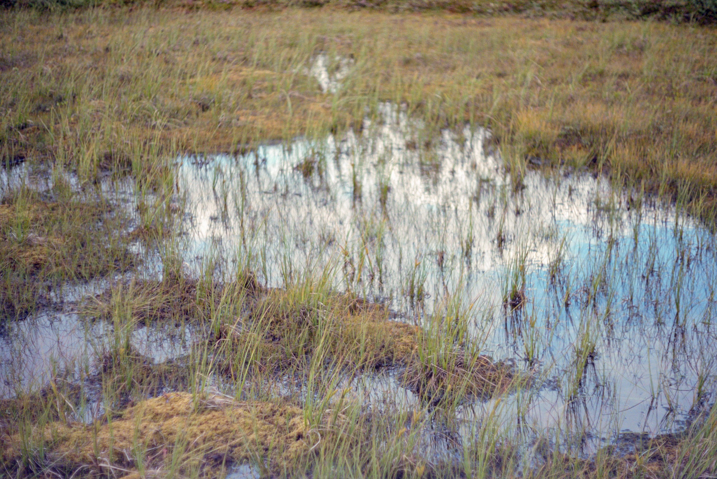Myr [my:r] – Bogs are an unavoidable part of Swedish running. Often found in open areas, they are passable, but slowly, with effort, leaving the Swedes unfazed. Whether the trail takes a dry ridge between islands or has man-made help, the colour and expanse of these areas catches the attention. Small plants line the paths, interspersed with patches of water or mud. At first glance you see only green, but as you pass you see the same palette of warm hues found throughout the fjälls. The difference with the bogs is that they are broken with flecks of white from the ångsull, or cottongrass, and rich flashes of red and yellow from the hjortron berries. These fruits are not called the gold of the fjälls for nothing. Soft underfoot, route choice comes down to experience on reading how wet the carpet of greens and browns in front of you are. Sometimes sponge-like, other times just wet mud, the feedback loop of foot placement is less focused on angles and more on not going up to your knee. Each step elicits a different sound, a splosh, a squelch, or a deep thud when you spring off of the sponge-like parts of the ground, sounding as though below is somewhat hollow.