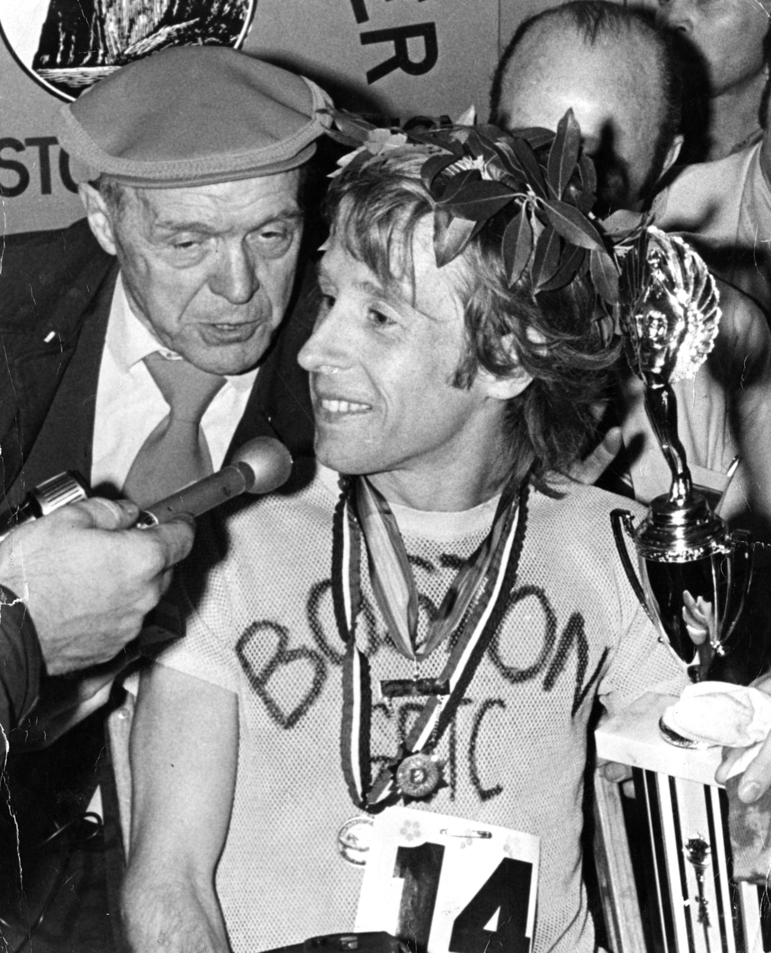 But for all that success, GBTC’s earliest, most well-known, impact on running - at least in the public eye - was seen via its televised long-distance performances. Twenty months into its life, GBTC was thrust upon the public radar when for just under two hours and 10 minutes, spectators, television viewers, and the running media alike, watched Bill Rodgers run the 1975 Boston Marathon in a victorious 2:09:55. The 27-year-old New Englander set a course and American record, all the while donning a personalized club shirt.