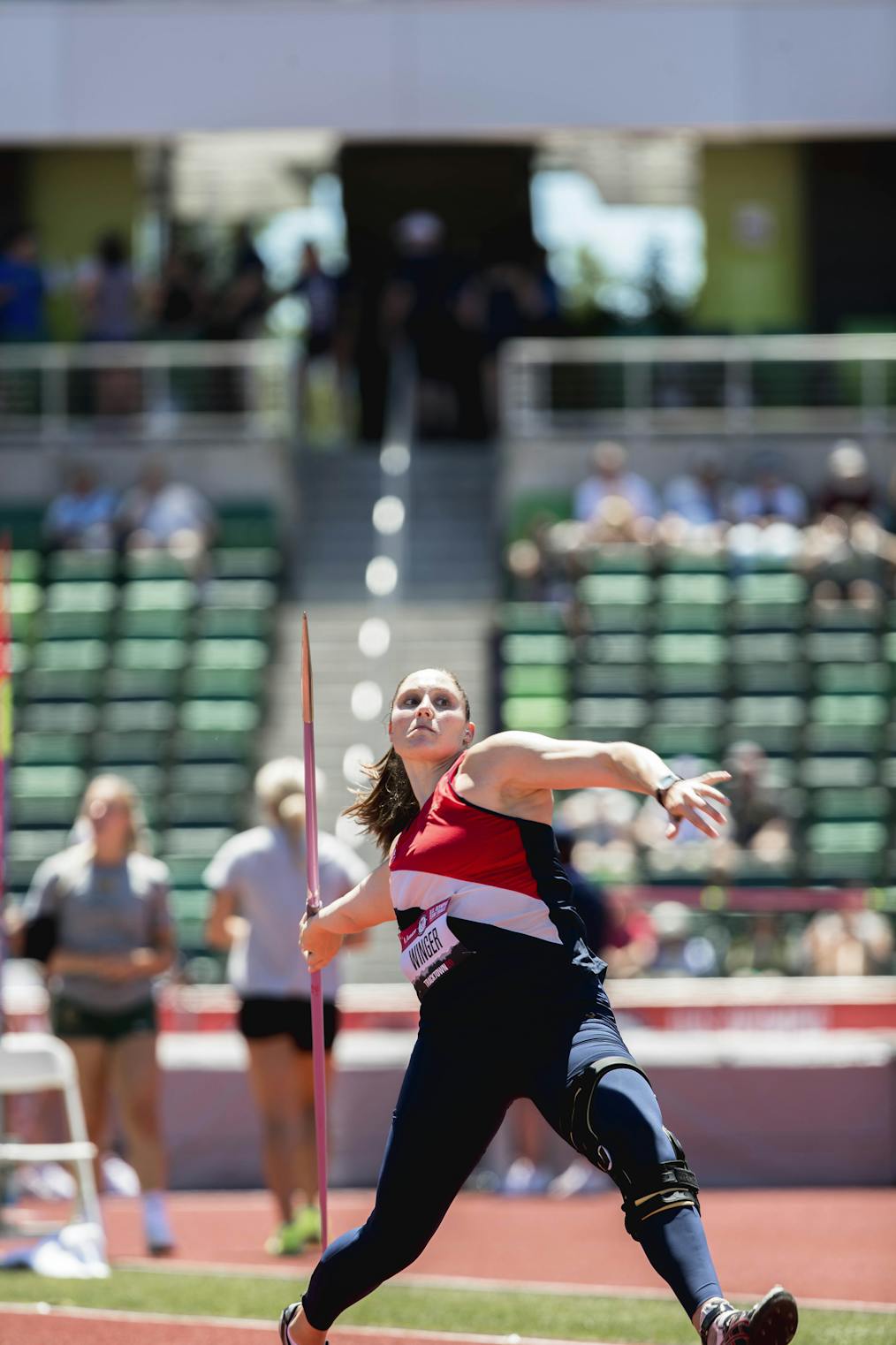 Several of the people who Kara treasured most were in the stadium for the javelin final at the 2022 Worlds. Her parents were there – sport had always been a family affair for the Wingers. Jamie Myers was there. He had begun working at the Chula Vista Training Center around the same time that Kara took up residence in 2009, and they remained close after Kara moved to Colorado Springs in 2012. Ariana Ince was there, sitting near Jamie. She and Kara were such good friends that Ari moved in with Kara during the pandemic.