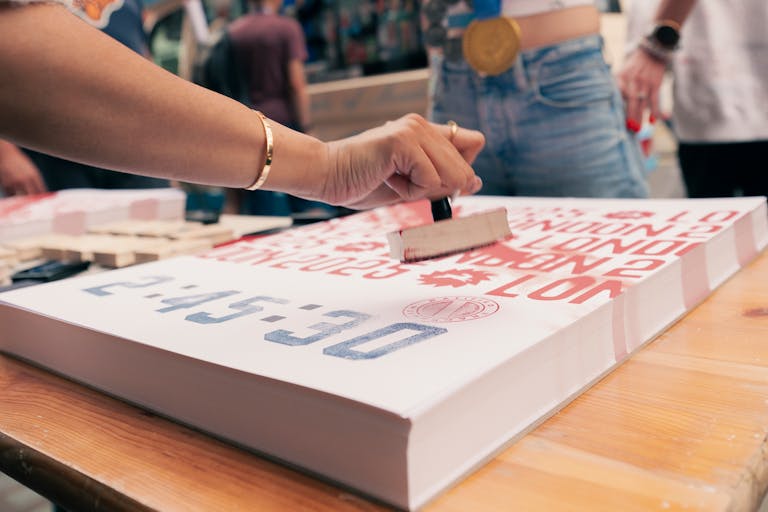 The Heirloom Hoodie is a one-of-a-kind marathon memento, adorned with patches that represent London ’26. Get yours on race weekend to have it manually customized by our onsite chain-stitcher. Plus, come back for future marathons to earn new patches.