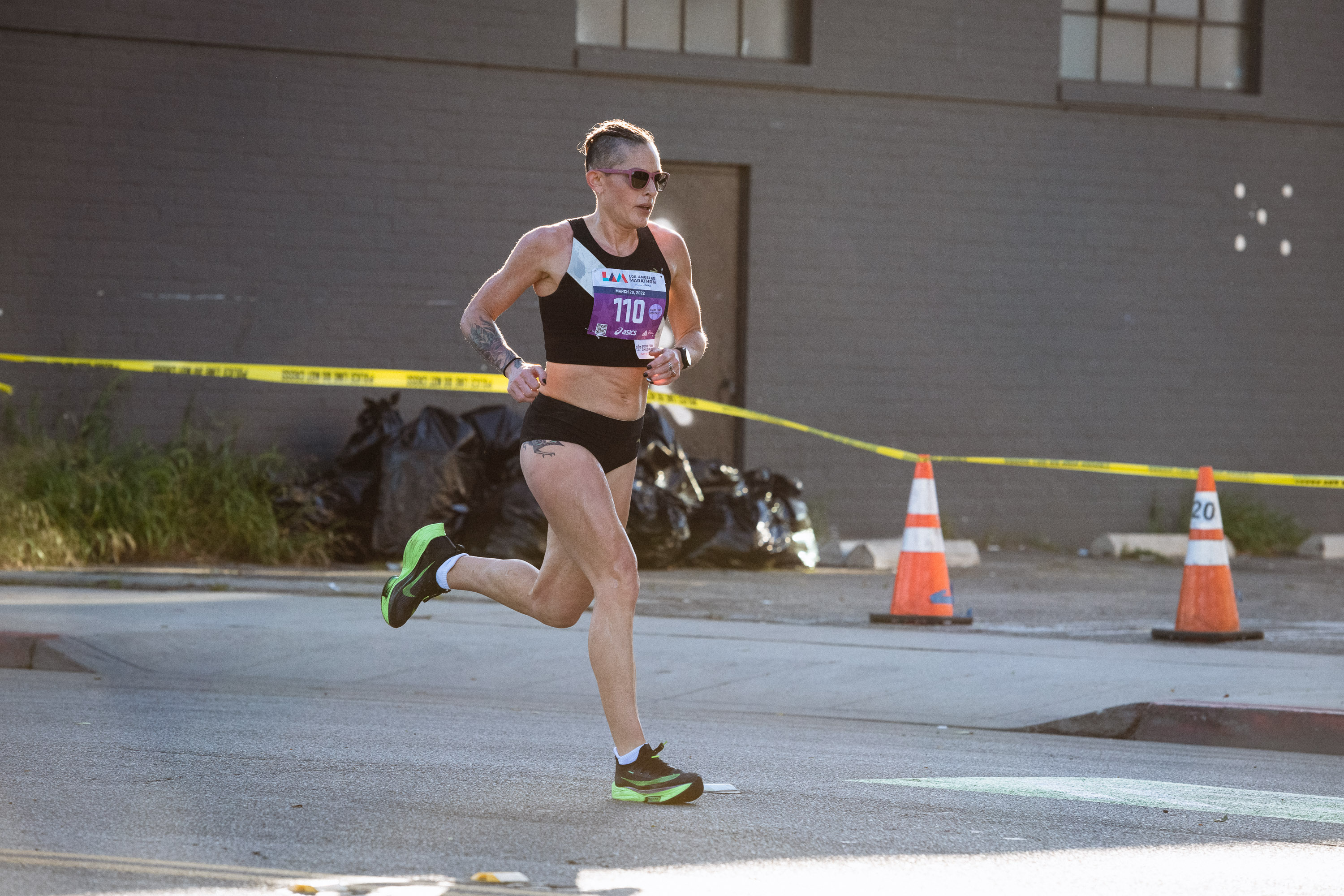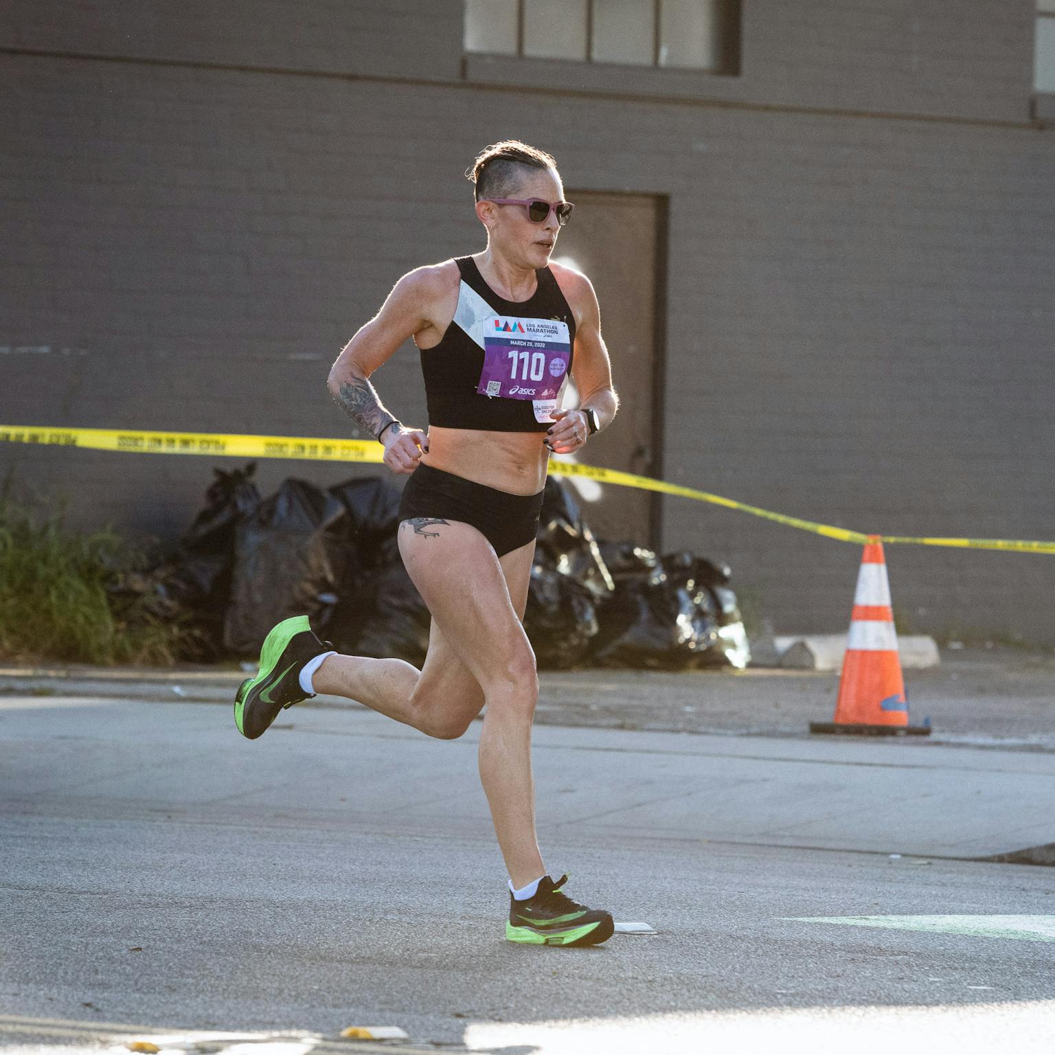 Lately that strategy has landed her in front and alone on race day: if not leading the race outright, as she did for the entirety of the Austin Half Marathon in February, then in the hunt for a podium spot, as she was when she ran a PR – and OTQ – of 2:35:06 at the L.A. Marathon in late March.