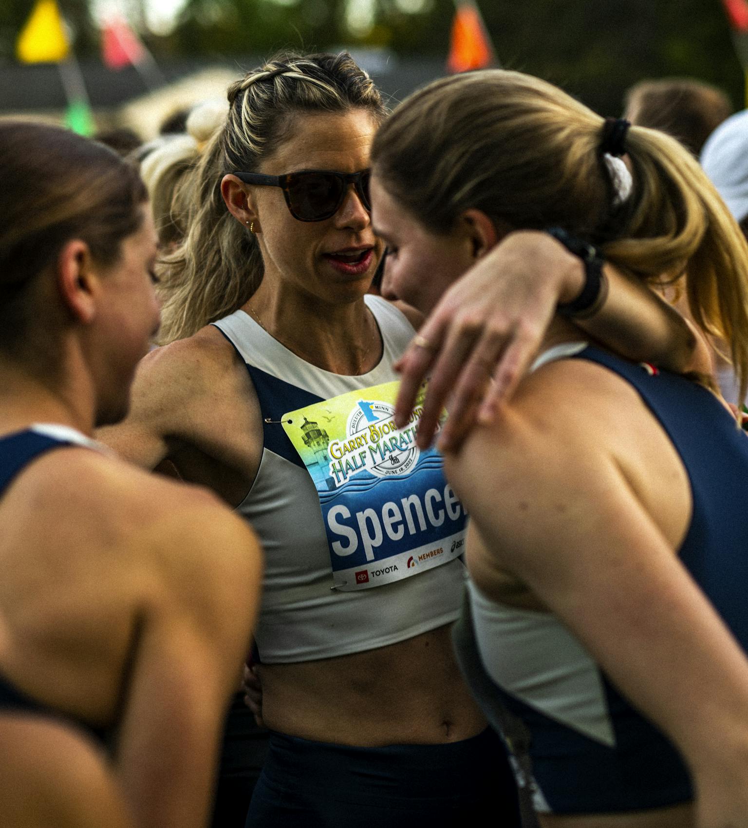 At the same time that morning, Emma Spencer has a different workout on deck at the Duke track in Durham. Gabi Séjourné is nursing an injury while Kim Maloney is not yet back training from giving birth. And Tavyn Lovitt is already in Wilmington, where she is due to run the marathon the following day.