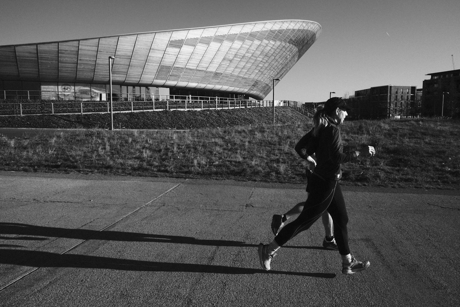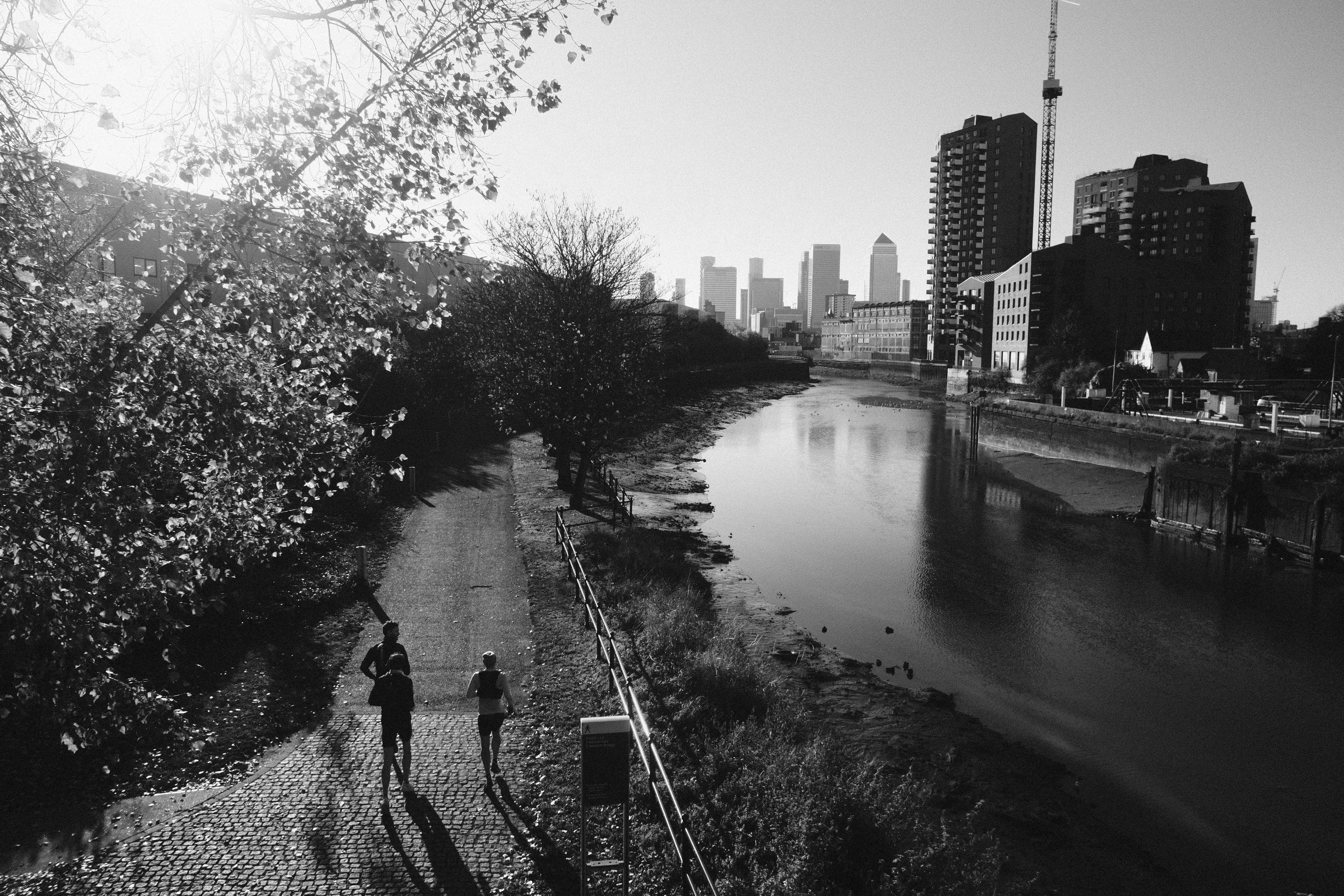 Our paths finally merged on Hackney Marshes. Scattered with goalposts and pitch markings, this hub of Sunday-League soccer glory just so happens to offer a great paved stretch ideal for workouts, as well as endless dirt that is dreamy for easy jogging (except when the mud thickens in the rain). Throughout summer 2020, there were blissful scenes of young Londoners enjoying the River Lea as it flows through the trees here. I was told it was because that summer felt so different - so claustrophobic and paranoid - that the freedom offered by the polluted water was worth the risk. But on this winter morning the Marshes were peaceful, dotted only with dog walkers and runners.