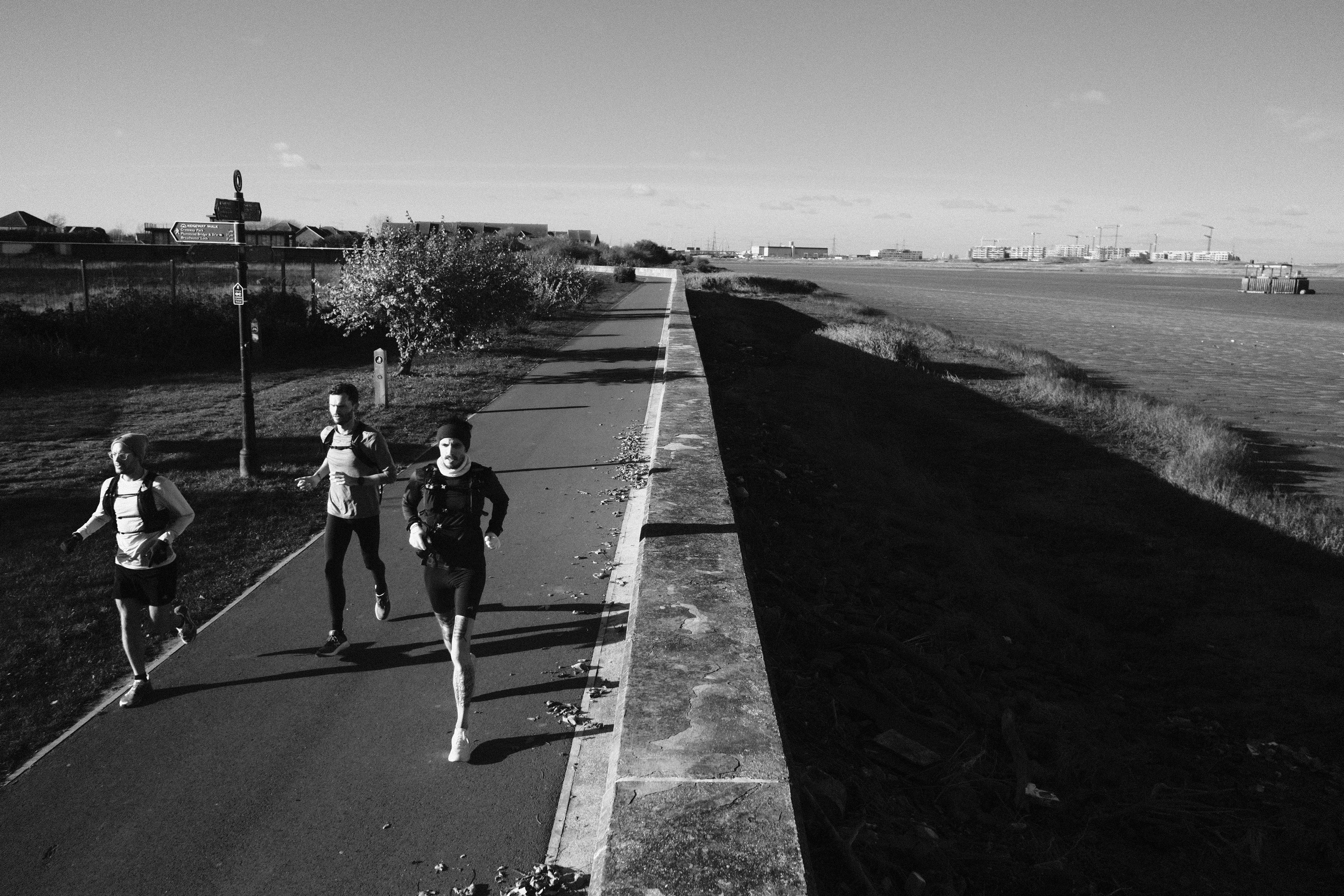 I remember thinking at the time that this couldn’t be London. The wind was flowing through the reeds as we found our groove on the singletrack. Dartford awaited. There was an odd mystery to it all. We’d been on our feet for hours, the sun was much lower in the sky now. Everything felt different, a hazy glory was hitting me. How had we never heard of this place? When I’m running on fumes everything else normally fades away but in those moments it felt like the tiredness heighted every sense. It was intensely filmic, a memory so sensory that it’s impossible to forget.