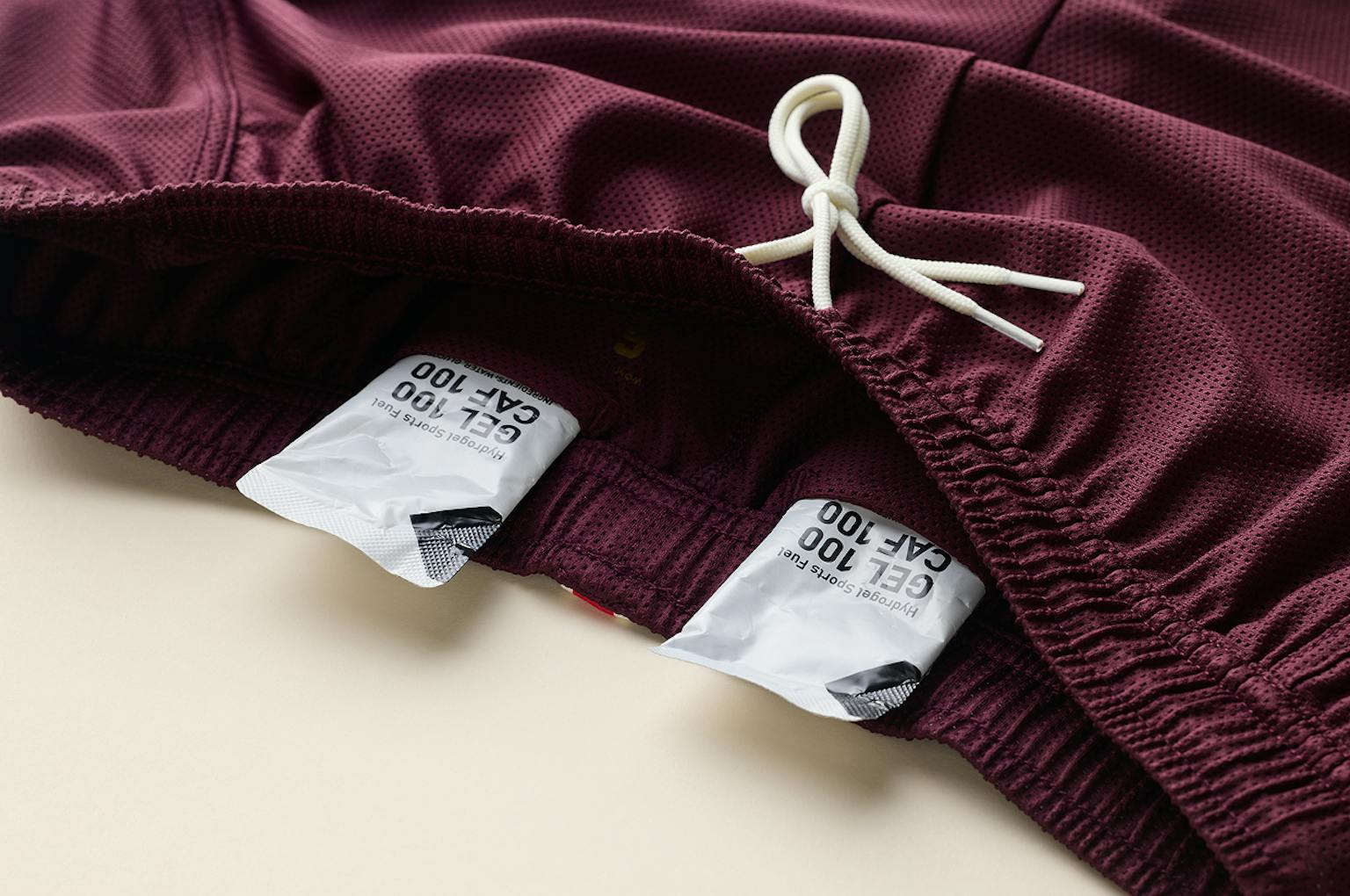 The shorts feature a lightweight liner in the same antimicrobial mesh as the body. Two drop-in pockets for fuel, keys, or cards sit at the back interior of the waistband.