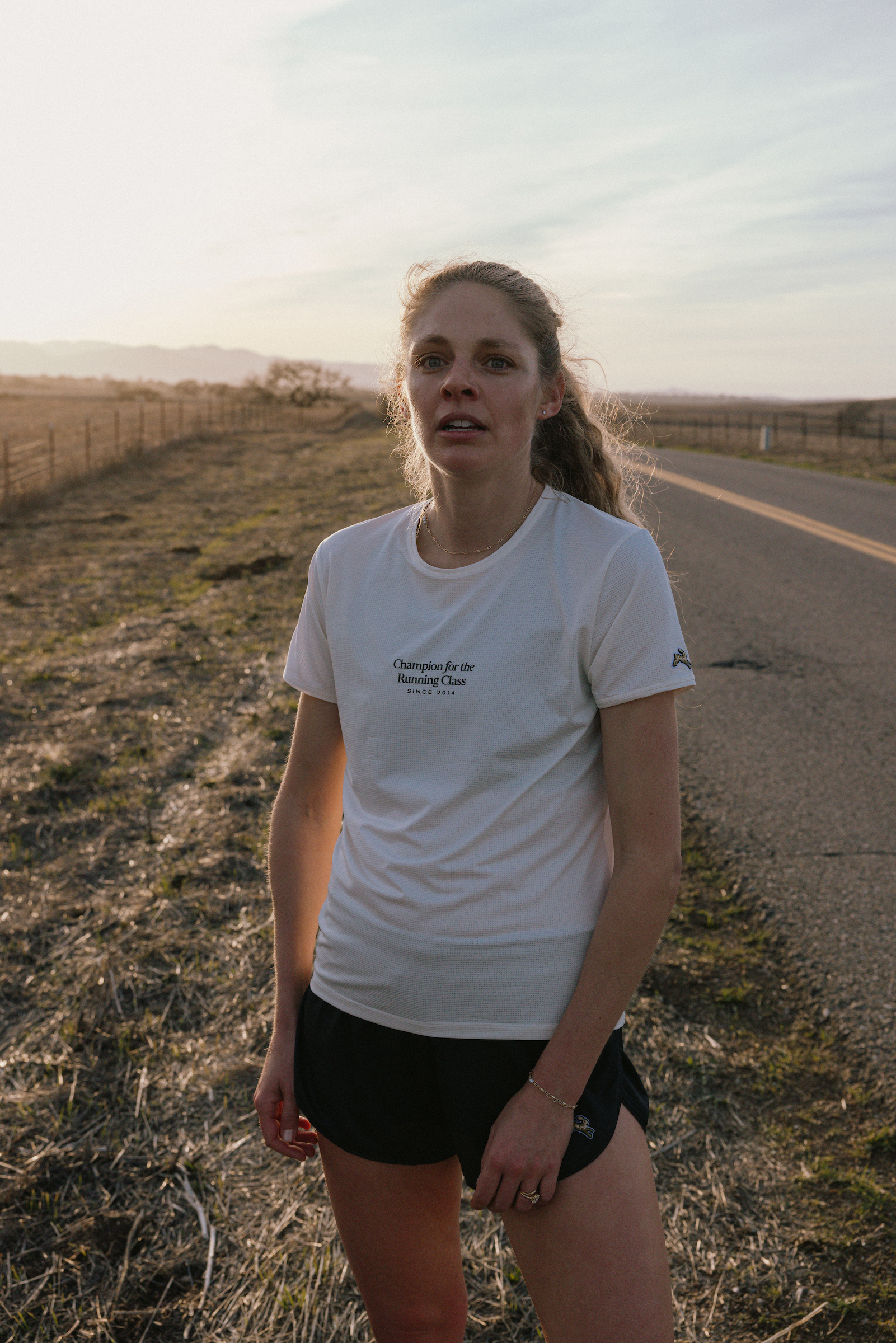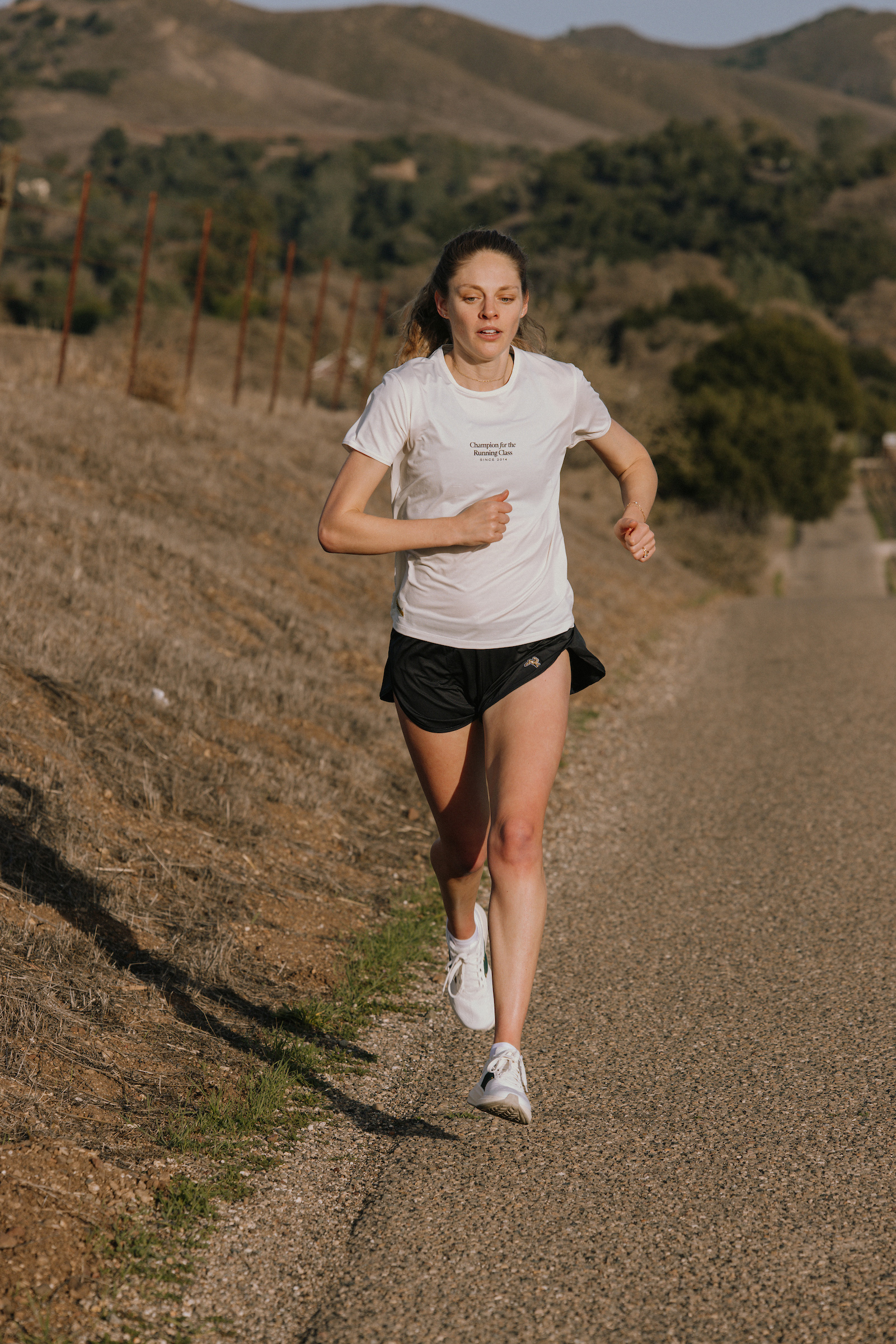 Our Twilight Tee is inspired by the twilight meets that have long been a staple of New England racing. These meets strip running down to its essence; competitors show up to the startline without affiliation, ditching the bright colors and giant logos so that the speed says it all. Our Twilight Tee reflects this understated intensity, crafted from a silky-smooth and light-as-air Italian fabric that feels incredibly cool against the skin. With high-speed stretch and a pared-back silhouette, it’s designed to let your kick – not your kit – do the talking.