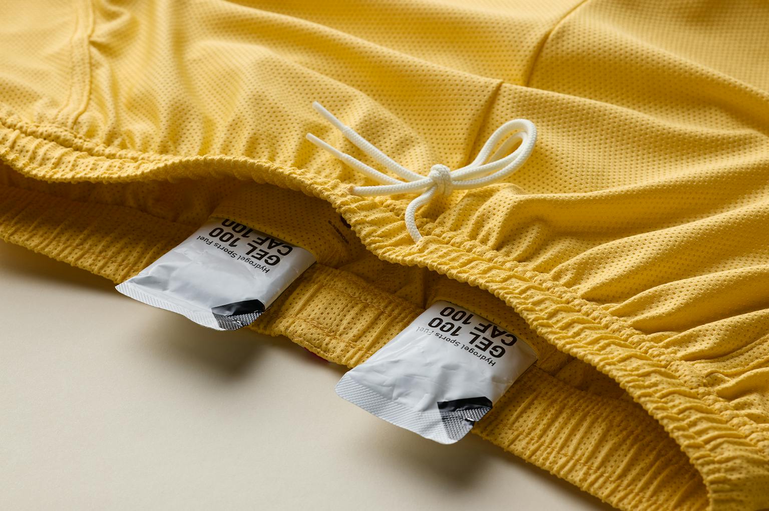 The shorts feature a lightweight liner in the same antimicrobial mesh as the body. Two drop-in pockets for fuel, keys, or cards sit at the back interior of the waistband.