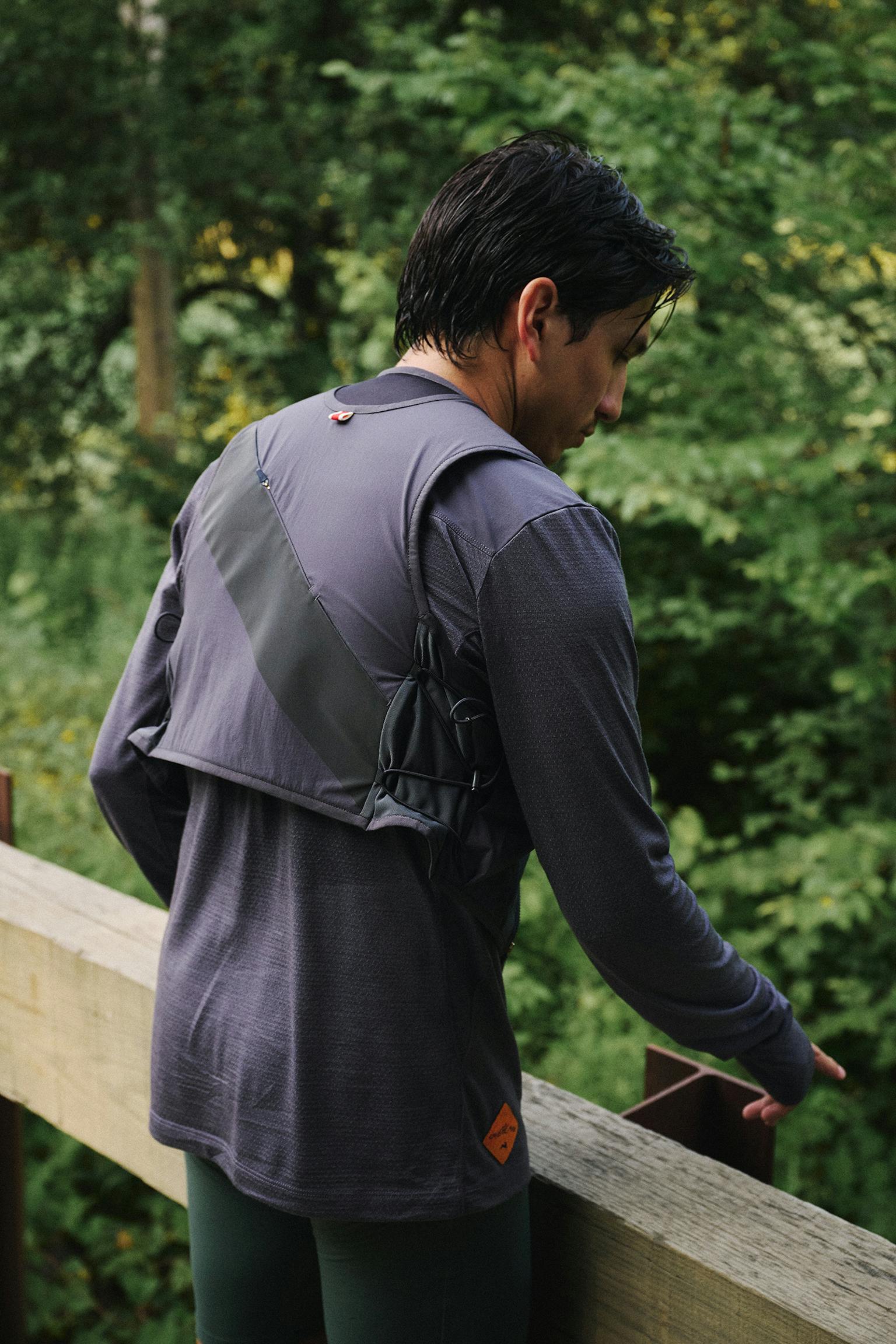 Thoughtfully designed to feel like a garment, but function like gear, the vest simply feels like another layer, just with smart and secure storage. We combined durable, PFC-free DWR panels with two types of mesh: soft mesh lines the back for comfort, and power mesh inside certain pockets to allow for drainage.