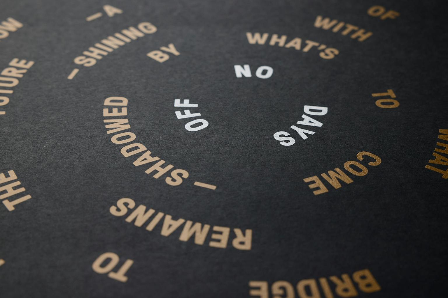 The idea for No Days Off came in 2014 as a tangible way to build habits and recommit to running in the year ahead. Ten years later, the story remains the same as we commit to improving every day–perhaps not with miles each day of the year, but with goal setting and intention to fuel the fire for a year of progress to come. This year's graphic symbolizes that march of time and the balance between the structure and the detail in training, and the emotion and romance that develops from that dedication.