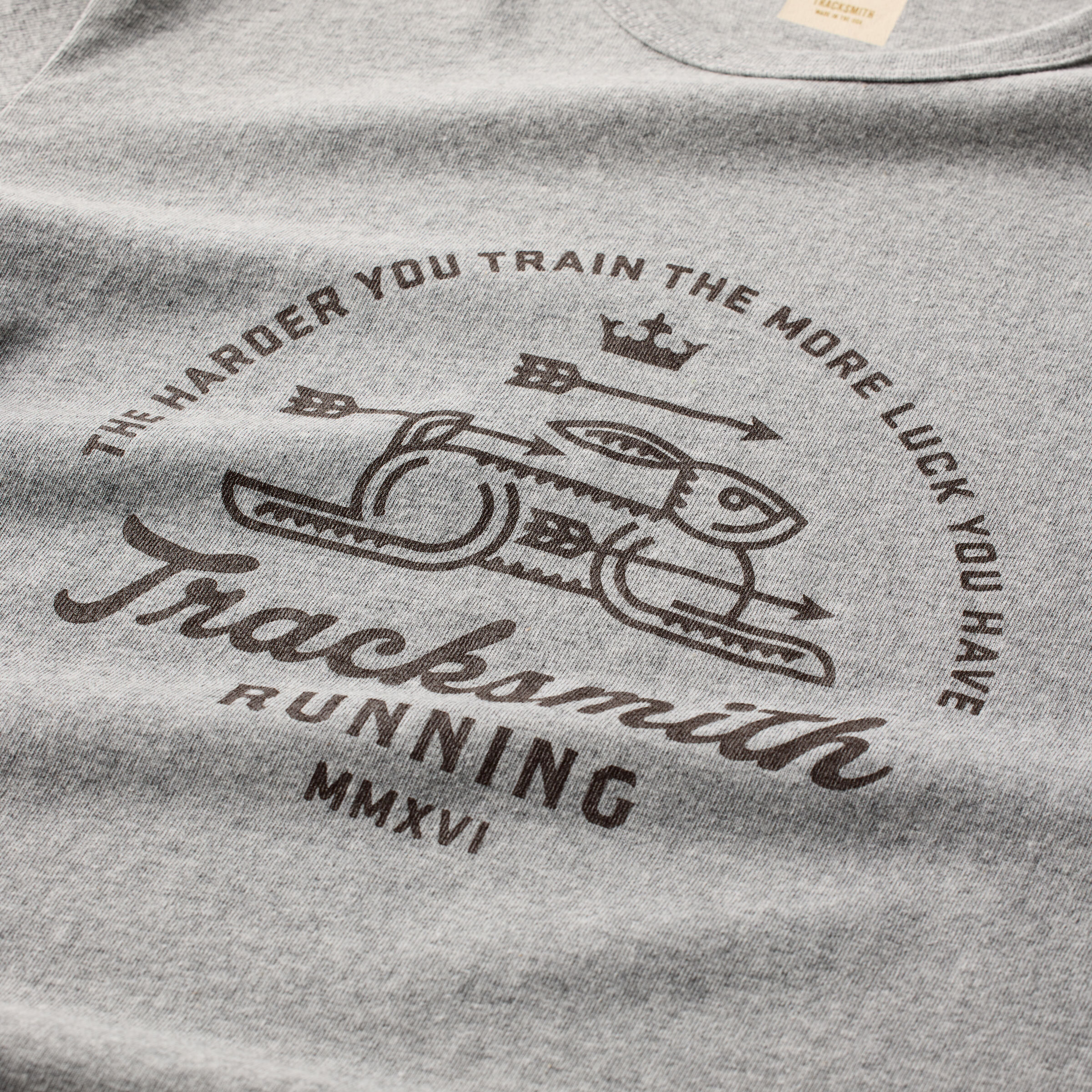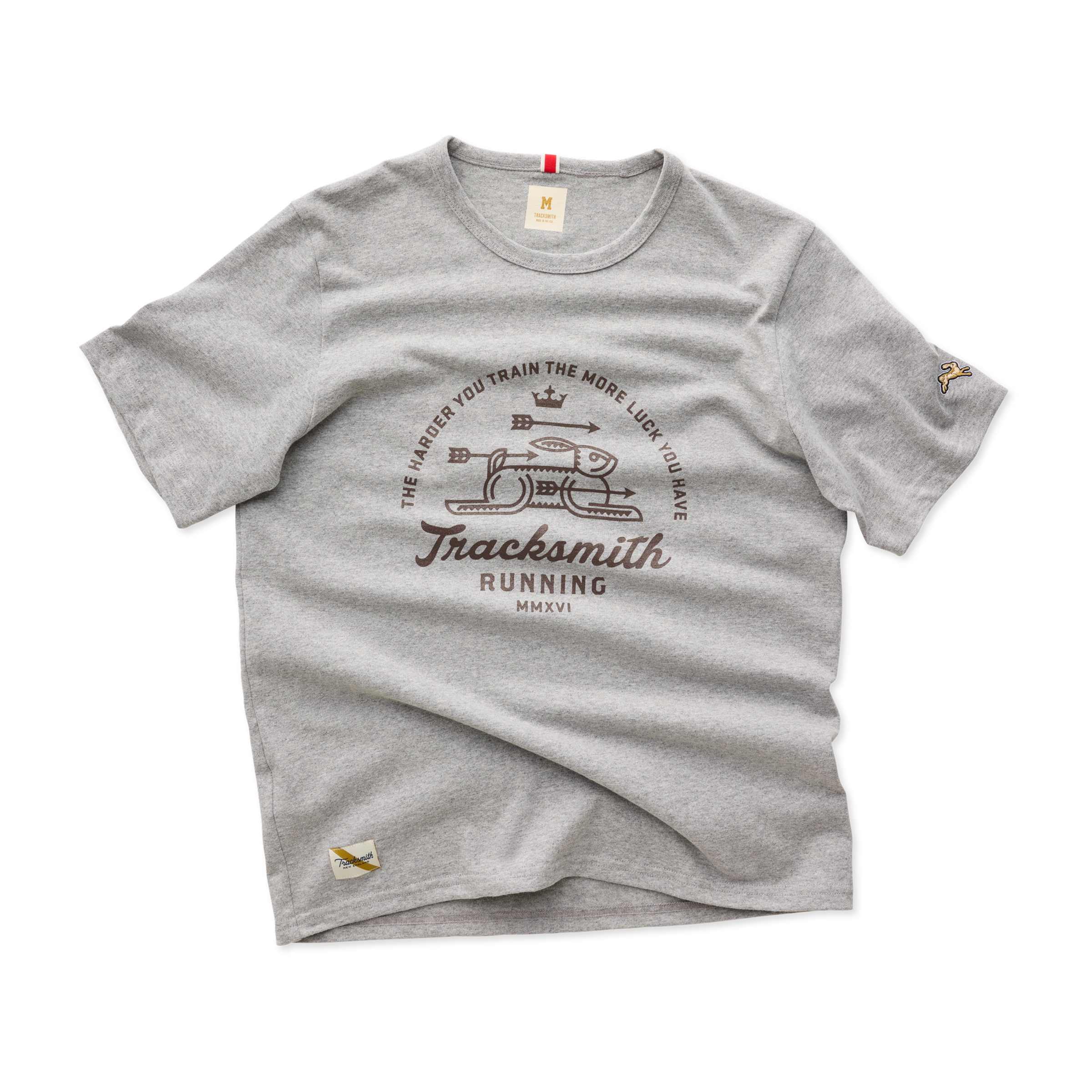 The Grayboy was one of the first products we ever made, inspired by beloved team-issued cotton tees that had lasted years. We revisited the archives to pull some of our favorite graphics for a limited-edition 10th Anniversary collection. Inspiration for our Grayboy graphics usually comes from a myriad of sources - from classical mythology, to iconic running novels, to team traditions and our favorite bars. Re-issued to celebrate a decade of Tracksmith, these designs honor what it means to be a runner and the pride that comes with every well-earned sweat stain.