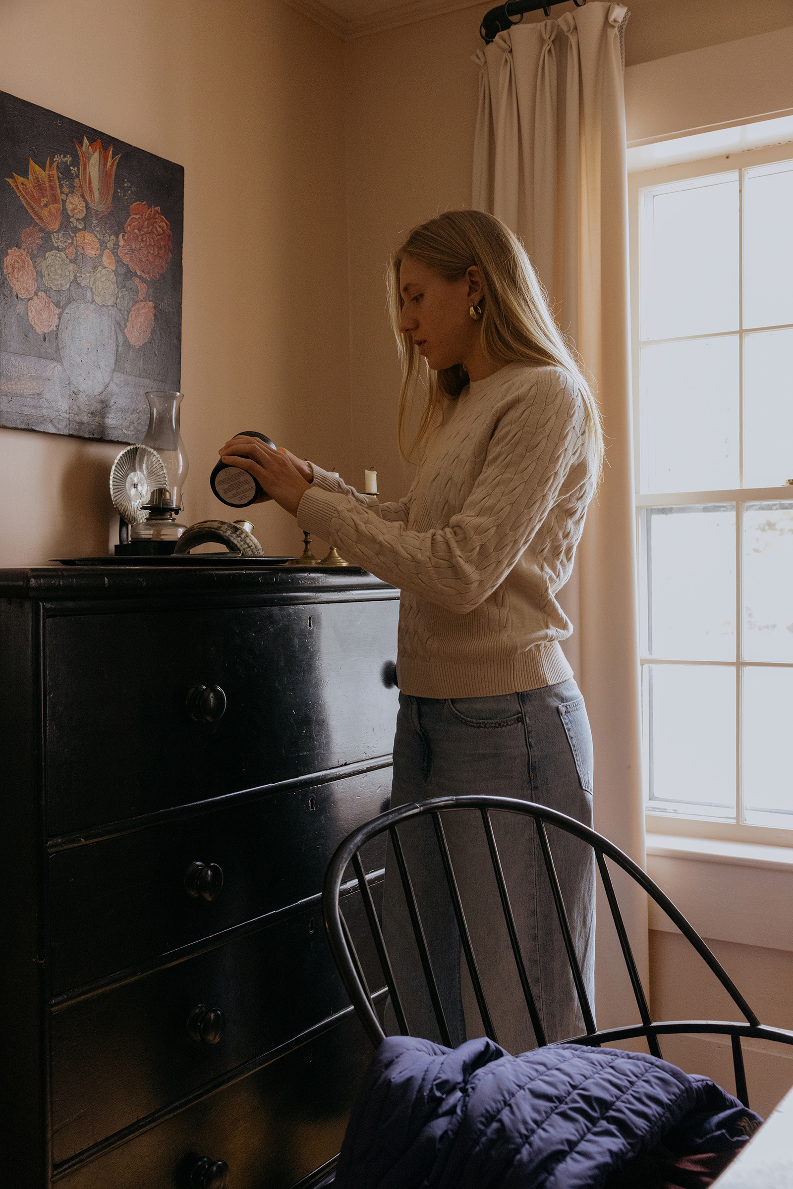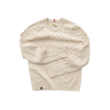 Knitted in a 50/50 blend of Merino wool and cotton, the sweater offers a luxurious hand feel that’s both classic and cozy. It makes for a comfortable combination of texture, weight, and warmth.
