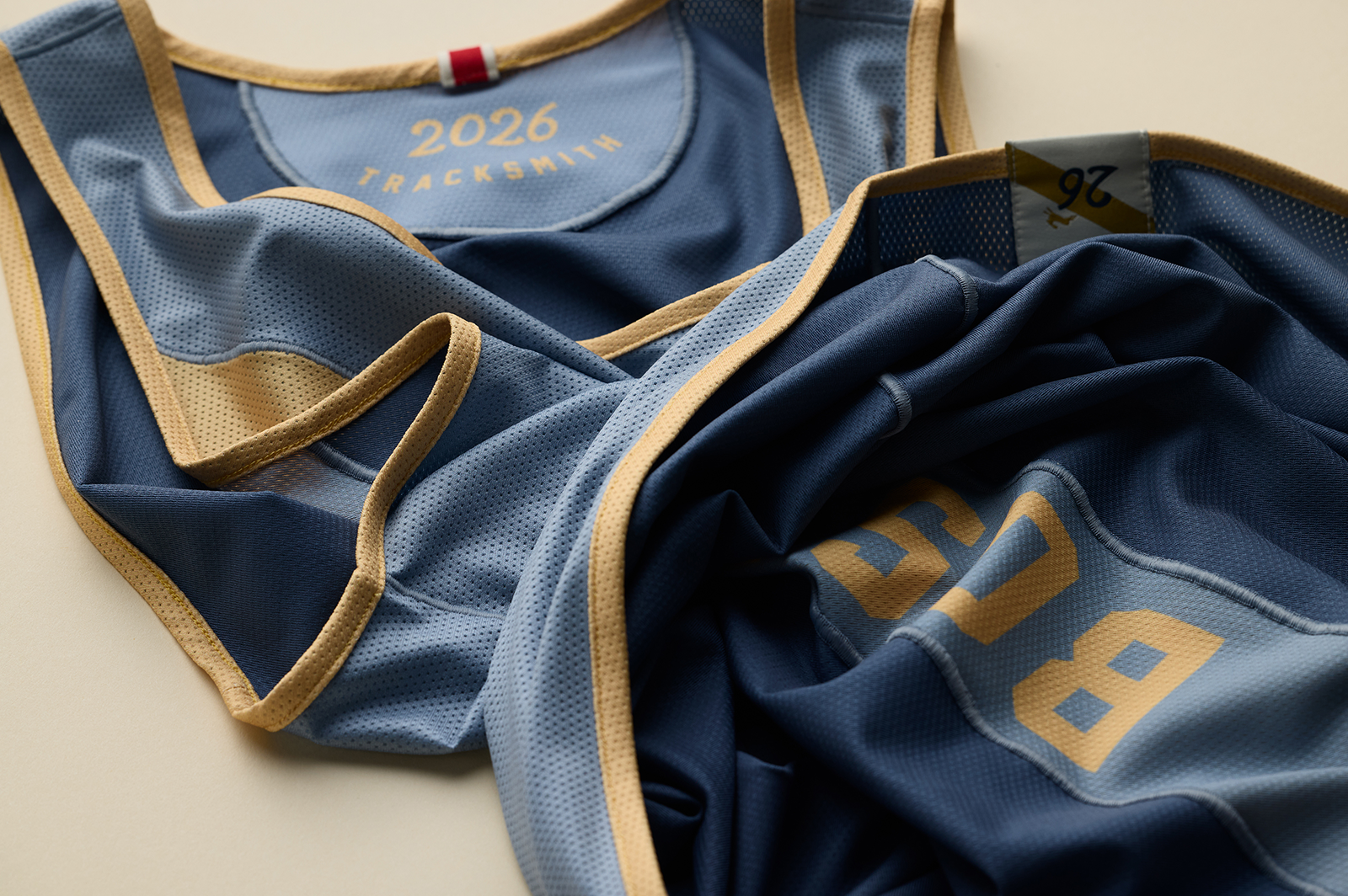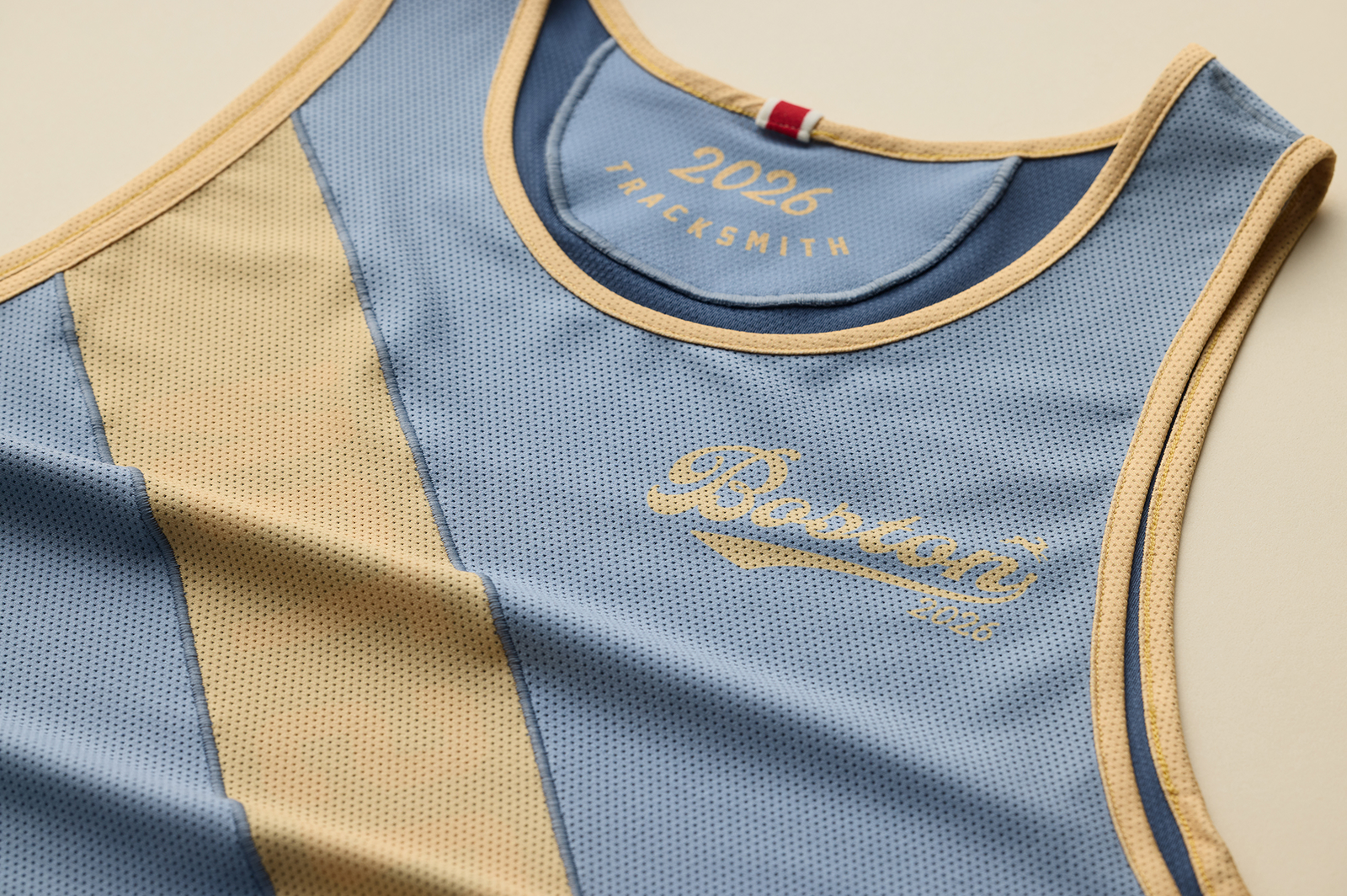 A reversible mesh racing singlet commemorating Boston ‘26.