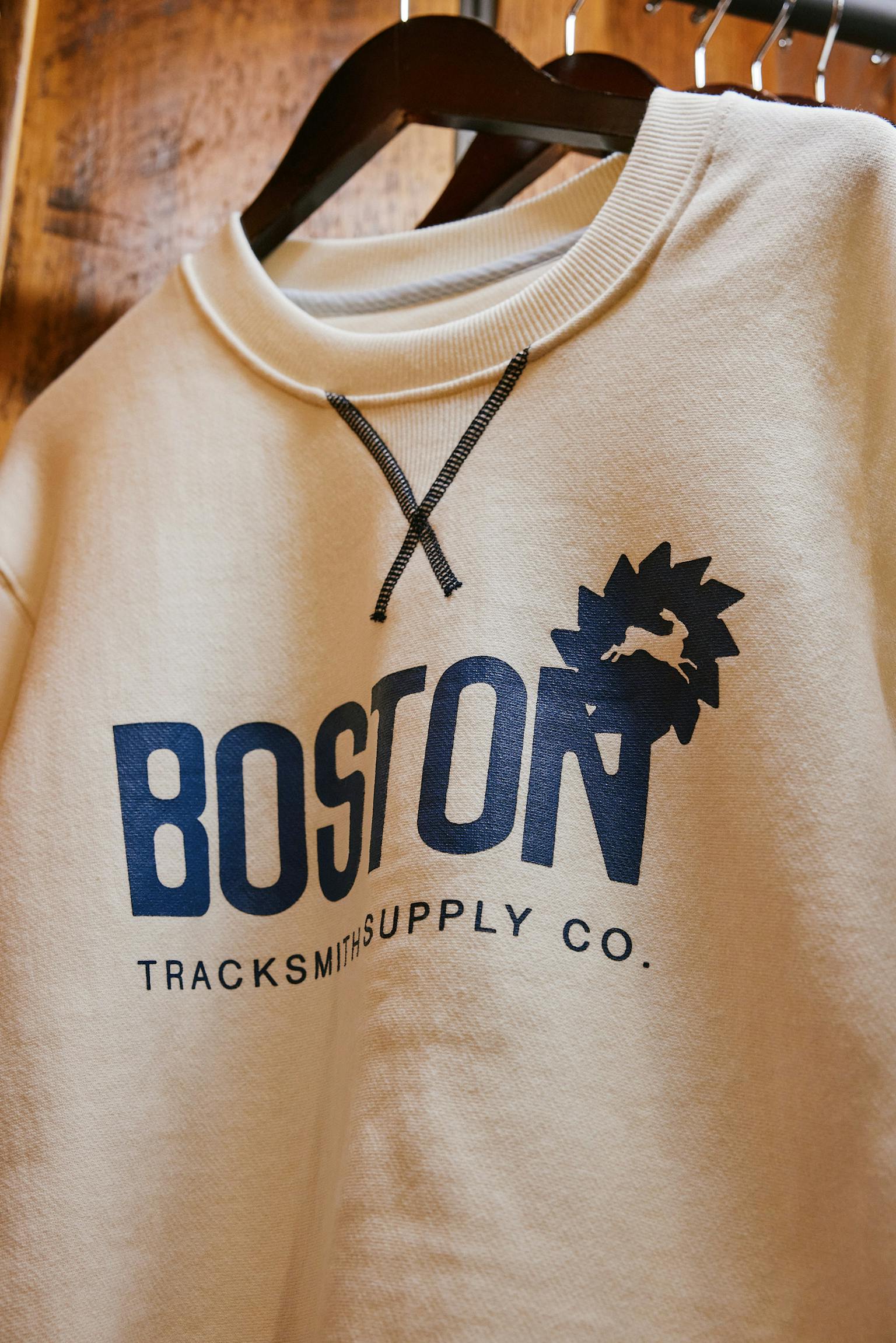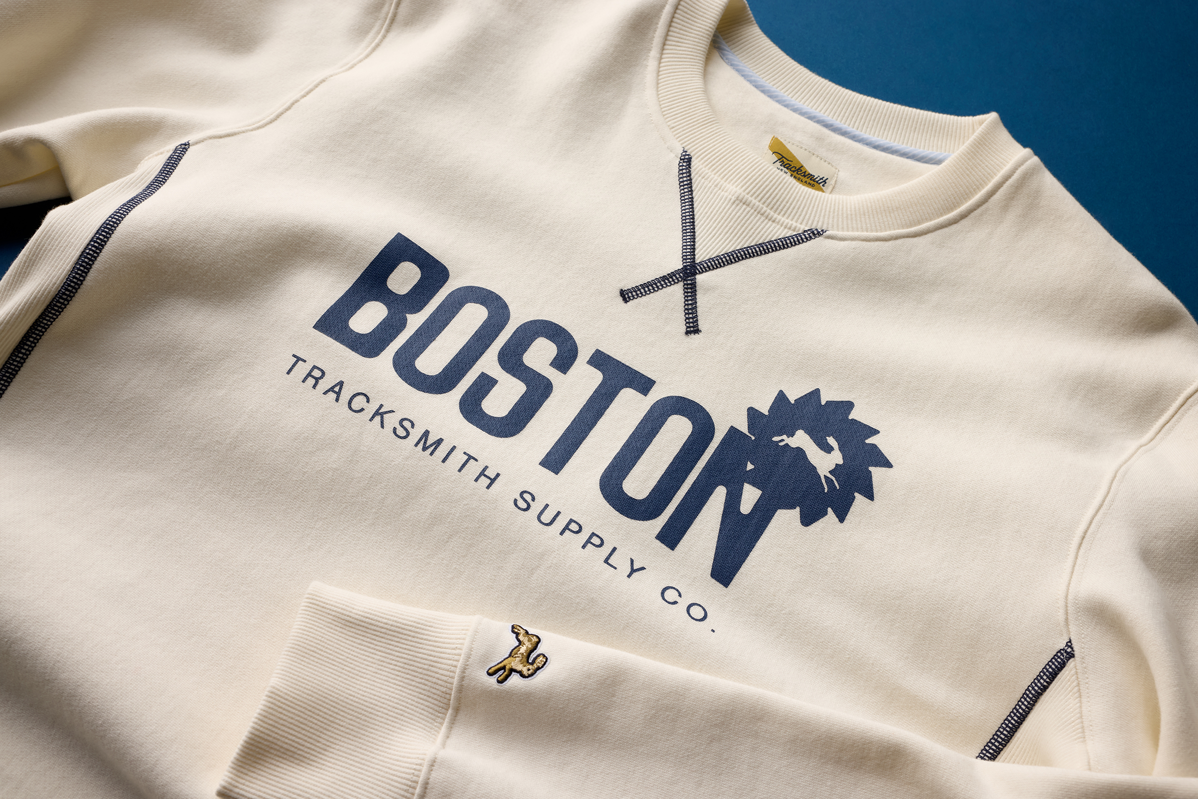 A classic crewneck sweatshirt delivered in a heavyweight reverse-weave cotton. Featuring custom graphics for Boston '25.