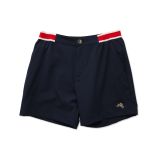 - Tailored style with a fly, horn button, and exposed racing stripe waistband