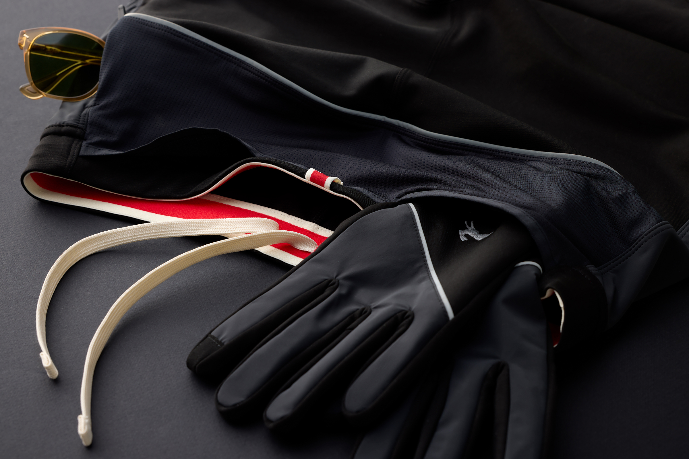 • Windblocking overlays extend from the waistband to the knee for added protection