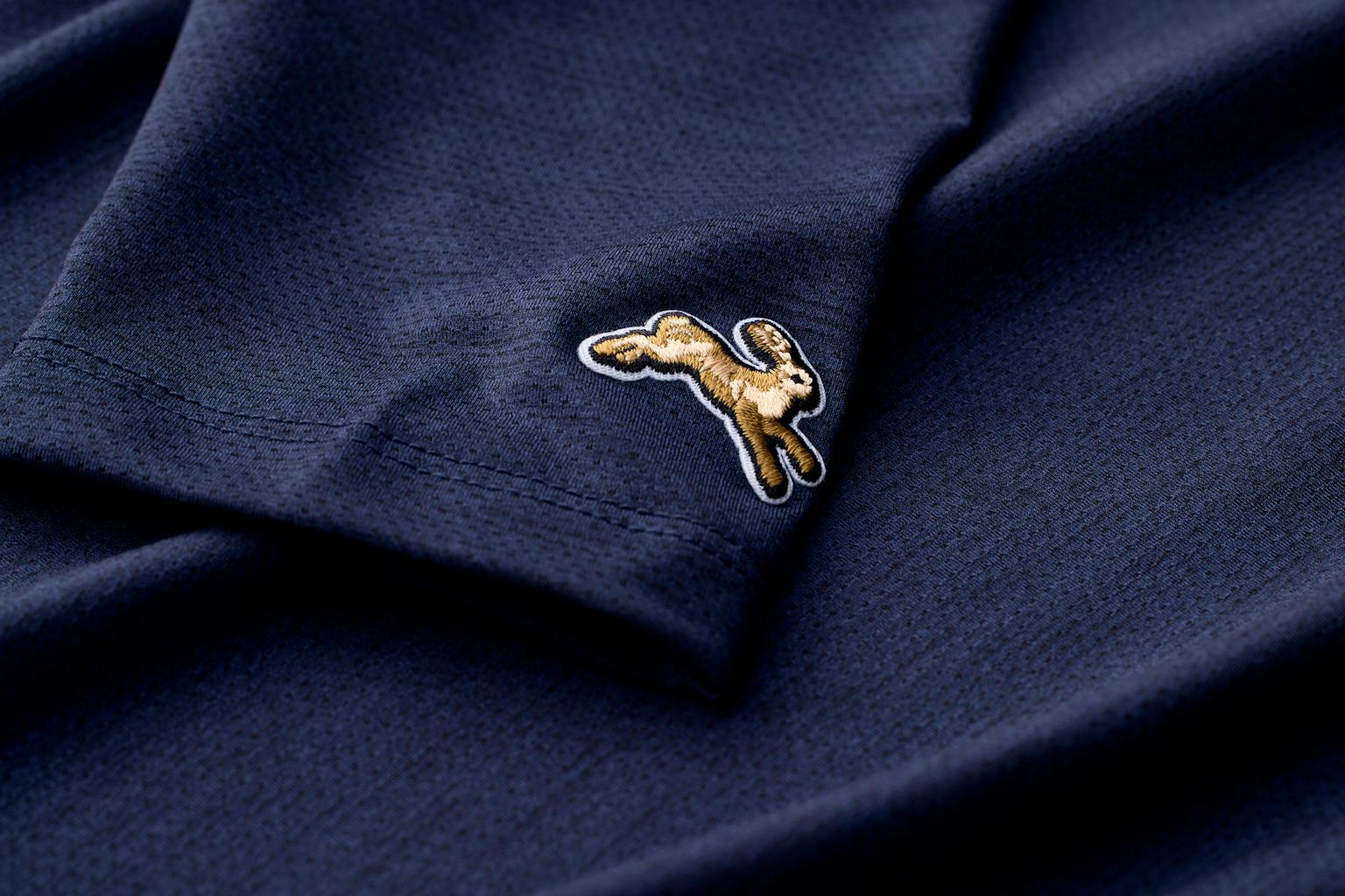 Every detail is considered, from the thousands of tiny perforations that allow for sweat and excess heat to escape, to the signature features, like the hare logo and racing stripe, that give it the touch of Tracksmith.