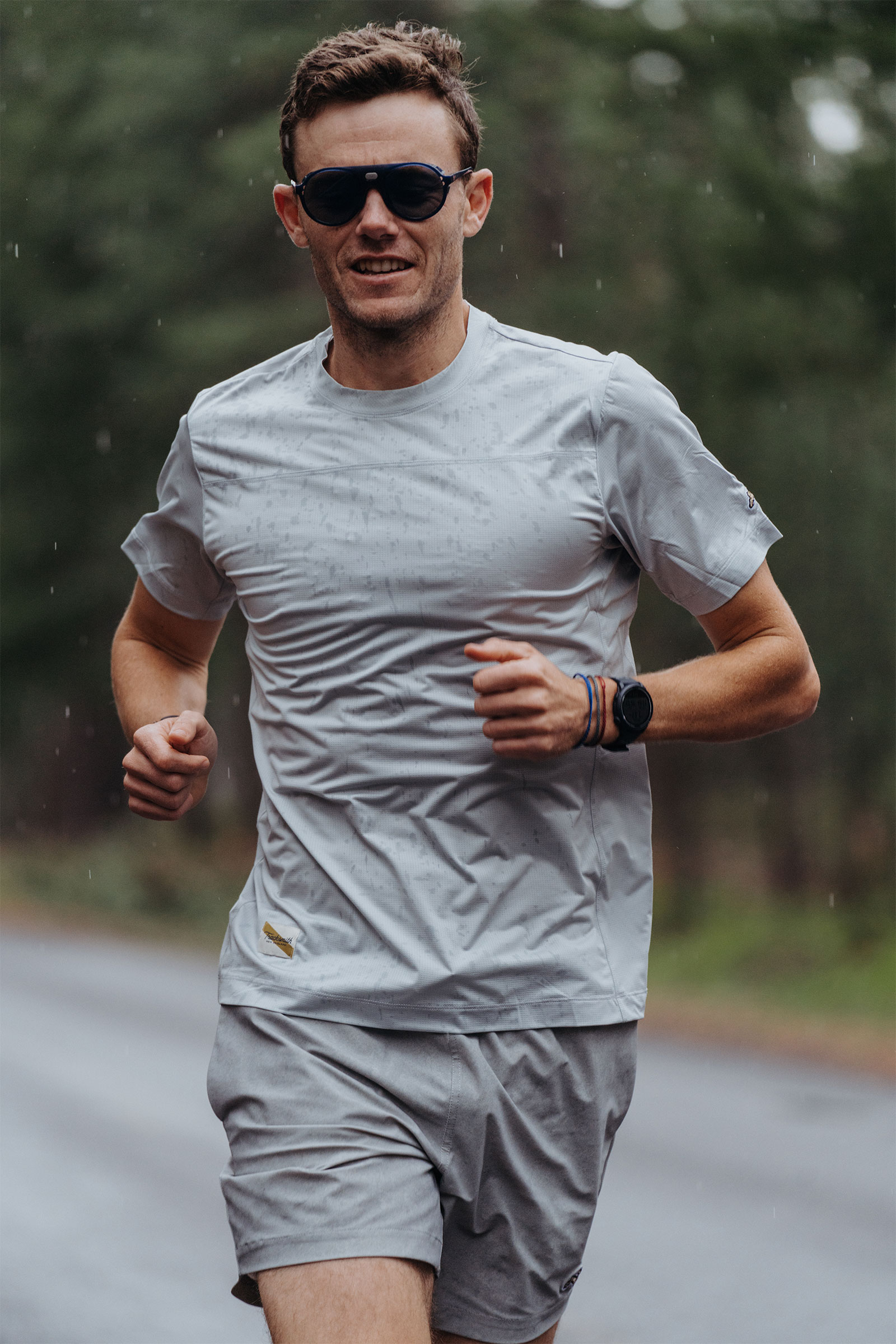 With their low-stakes atmosphere, twilight meets are the kinds of races runners often choose to train through. As such, the Twilight Tee needed to be light enough for race speed, but tough enough to handle workout repeats. The difference is in the details: a reinforced double stitch construction adds durability, while stretch gussets at the sides and an inverted arc back yoke allow freedom of movement.