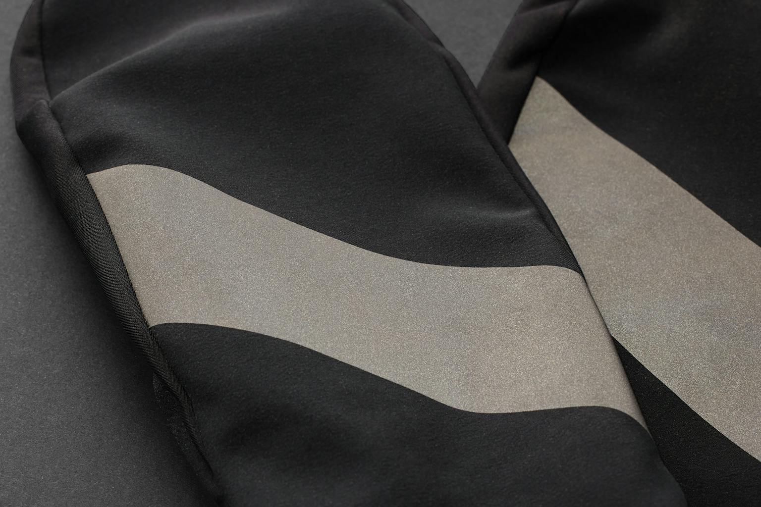 A reflective sash at the front of the mitten offers visibility in low light. We worked with 3M to select a reflective material for maximum brightness and on-angle reflectivity.