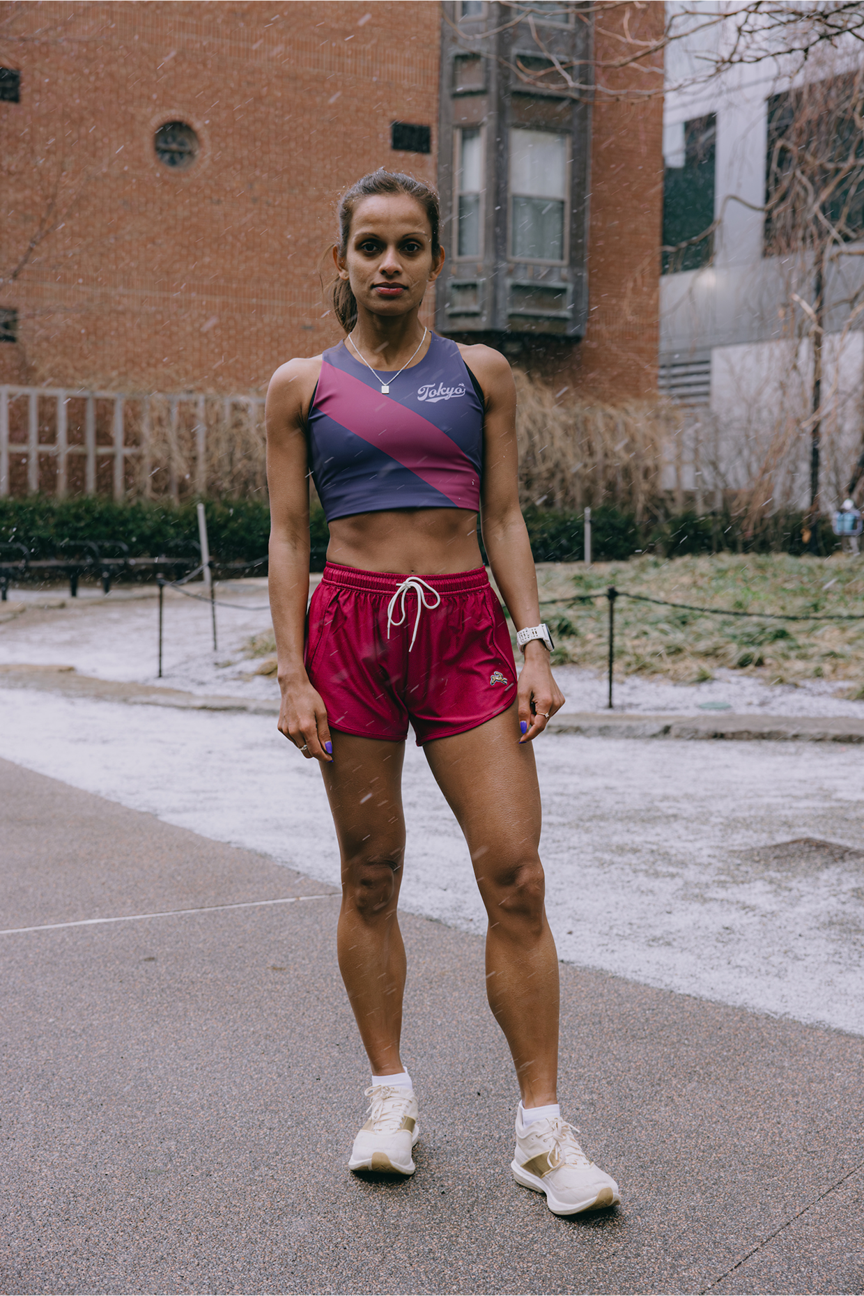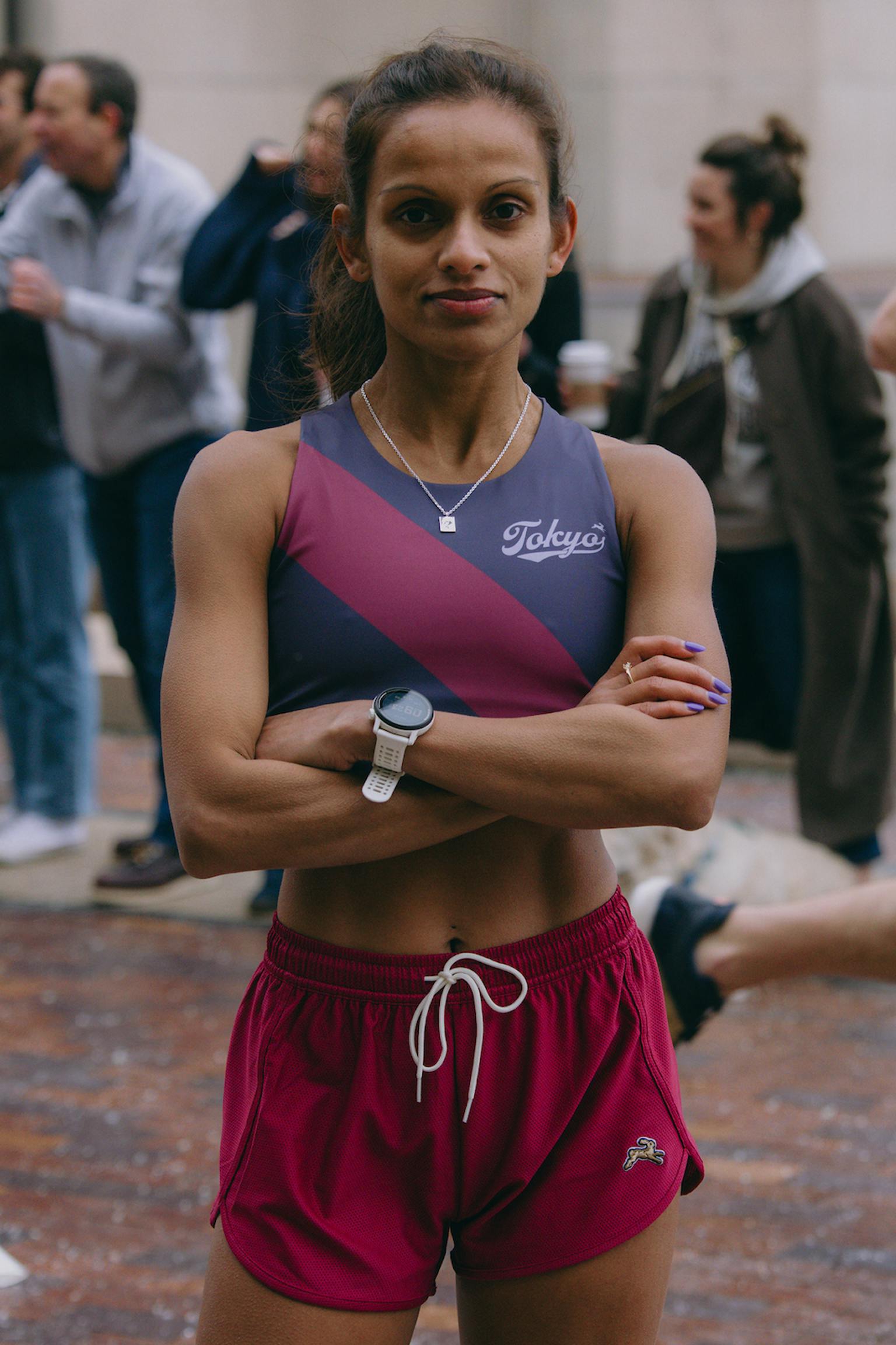 Commemorate your major moment with our Tokyo Crop Top, offering a sleek race day look. Cut from a compressive yet comfortable fabric, a racerback fit and deep cut shoulders allow for unrestricted arm swing while a soft, elasticated hem sits under the bust for medium-impact support. With colors that nod to Edo purple and the city’s cherry blossoms, considered details – from the heirloom script to the signature sash – elevate this crop top from race day kit to a timeless memento.