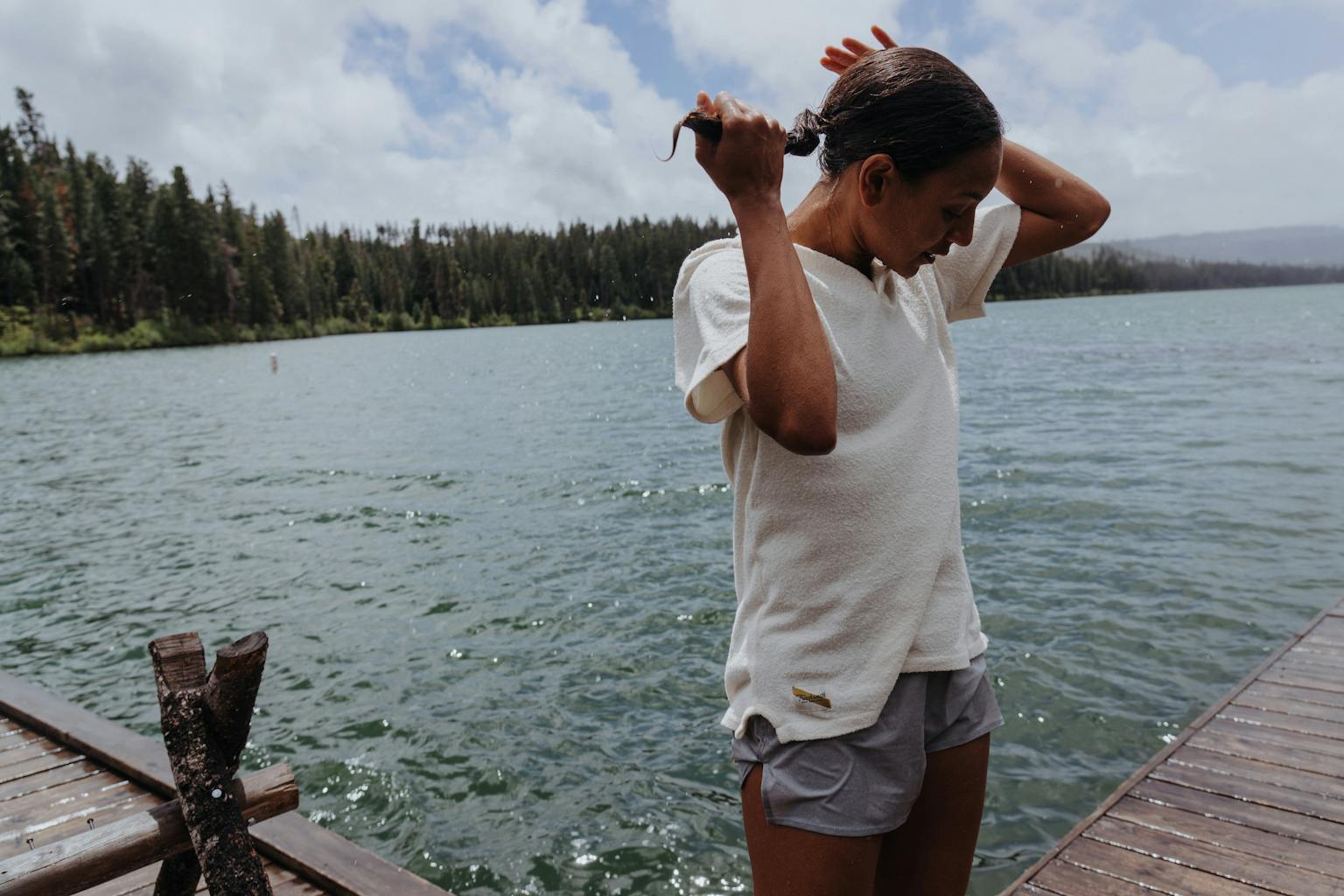 We tested the Terry Tee's versatility on a running road trip through Oregon. The relaxed fit and comfortable styling made it the perfect top to pull on post-run or swim. Plus, it dries in a flash (even after a surprise rain shower).