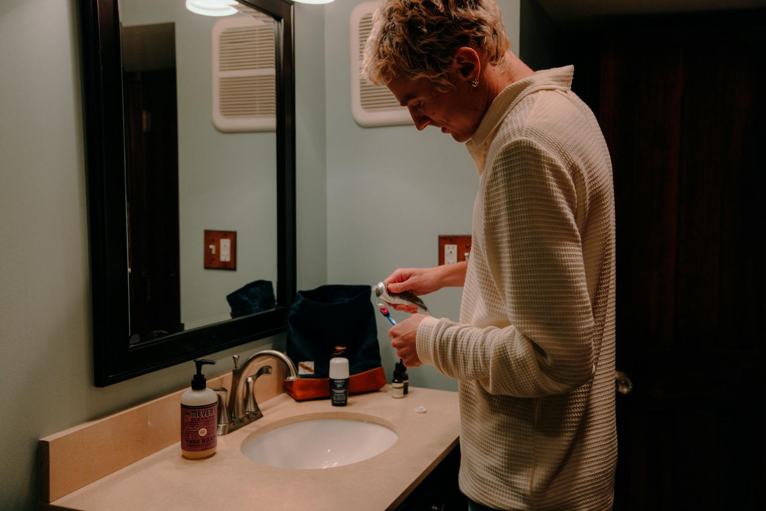 With a carrying capacity of up to 7L, our Dopp Kit offers ample space to bring the essentials of your morning routine with you. The leather strap allows for the kit to fold down or expand as needed.