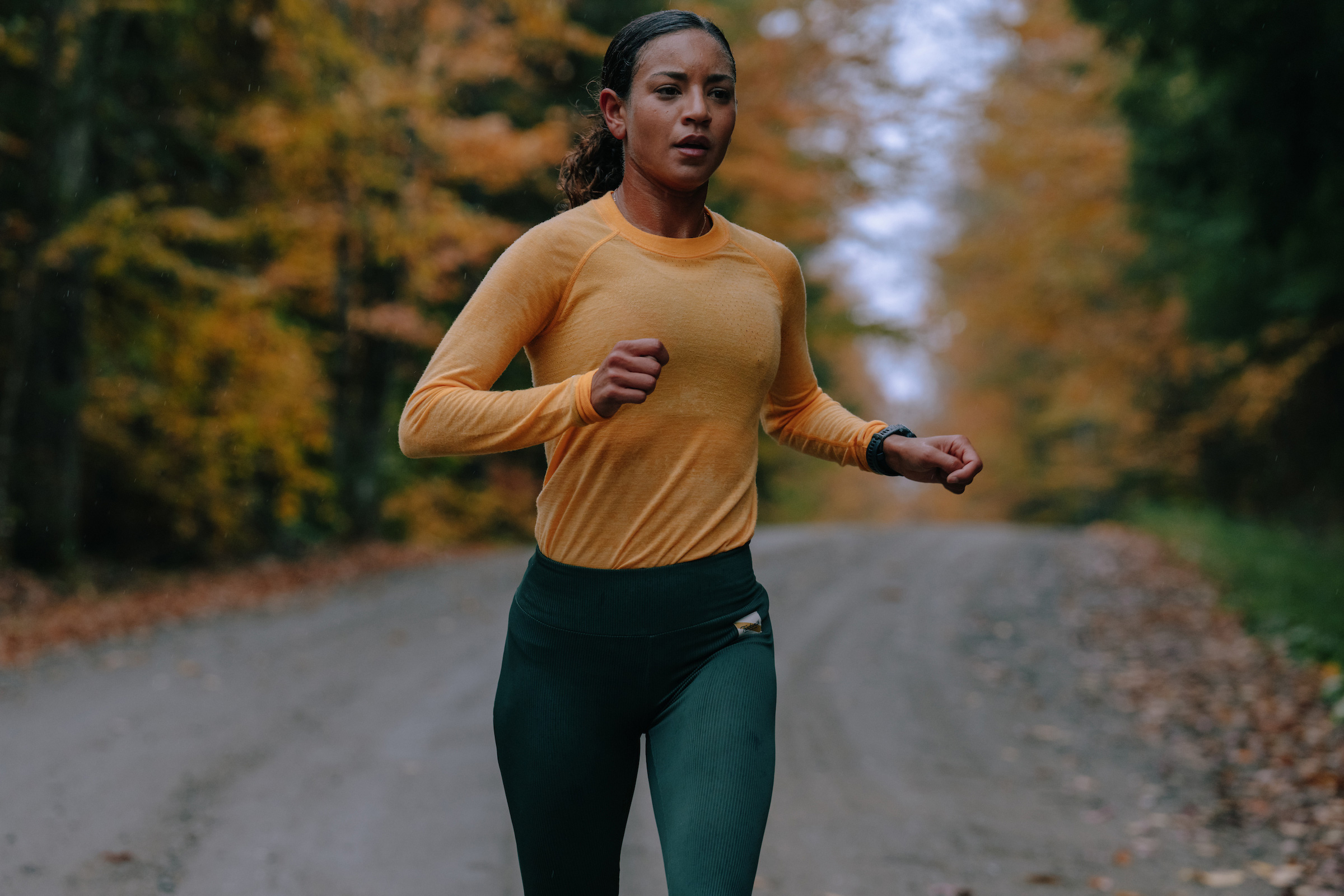 Running tights are some of the most important pieces in our winter wardrobes, and also some of the hardest styles to perfect. Select a fabric that’s too thick and your run becomes a waddle. Too thin and you’ll feel the wind whipping onto your legs with every stride. In exploring textured fabrics, we found that ribbing added a host of benefits. Like a waffle knit, the texture regulates temperatures. The channels trap heat and create a thicker fabric structure, which helps increase both warmth and modesty. A silky-soft hand feel, four-way stretch and thoughtfully placed pockets make these tights winners.