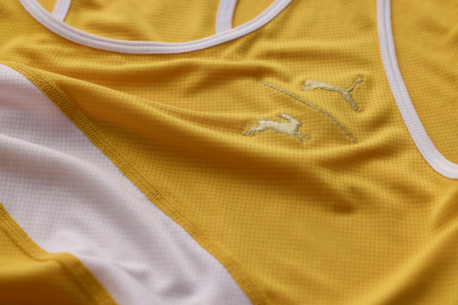 Speed City athletes donned statement-making blue or gold singlets with white sashes to compete. Inspired by these original uniforms, our race-ready kits are delivered in classic Speed City colors. Cut for performance from lightweight dryCELL mesh, they’re finished with our Tracksmith x Puma insignia.