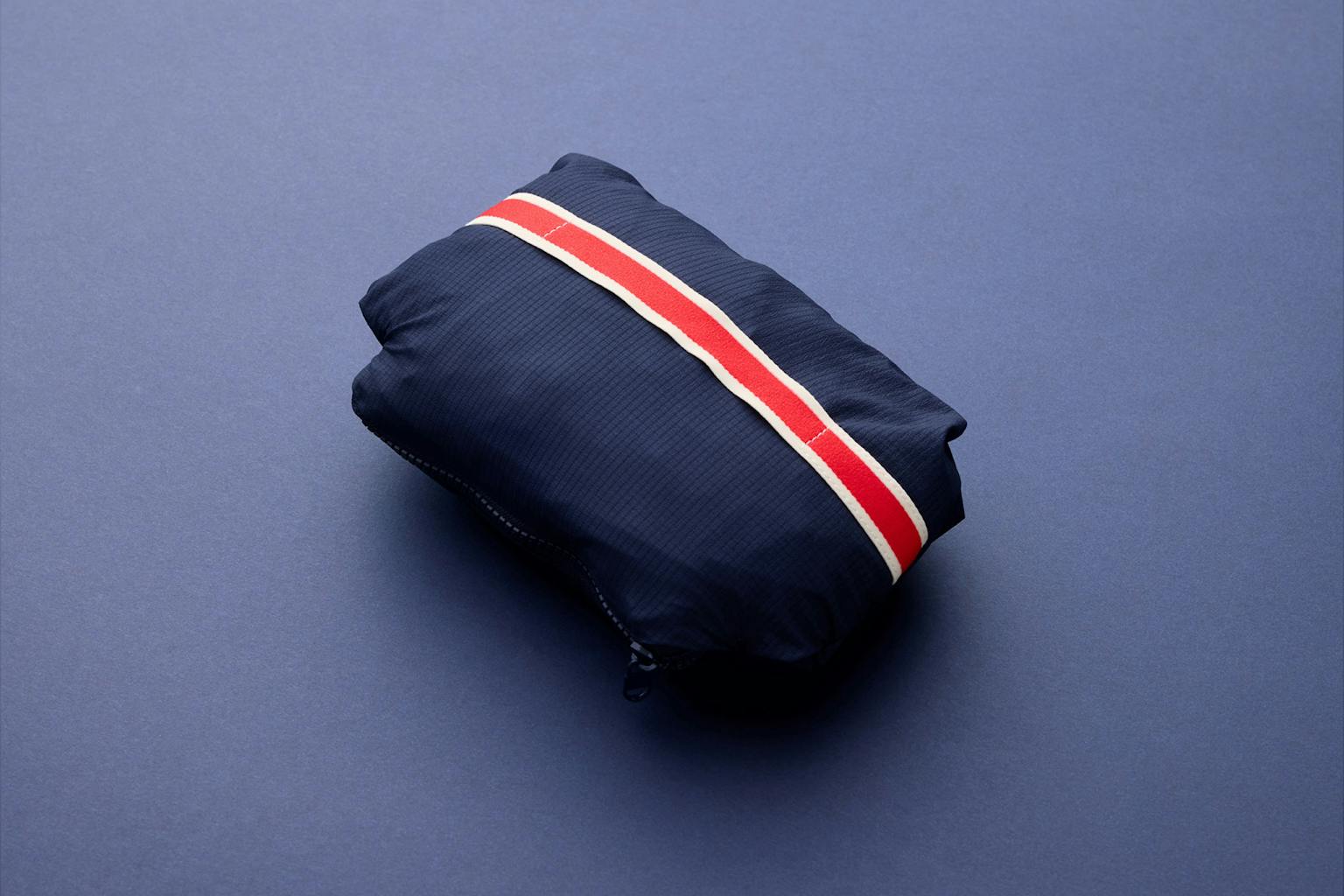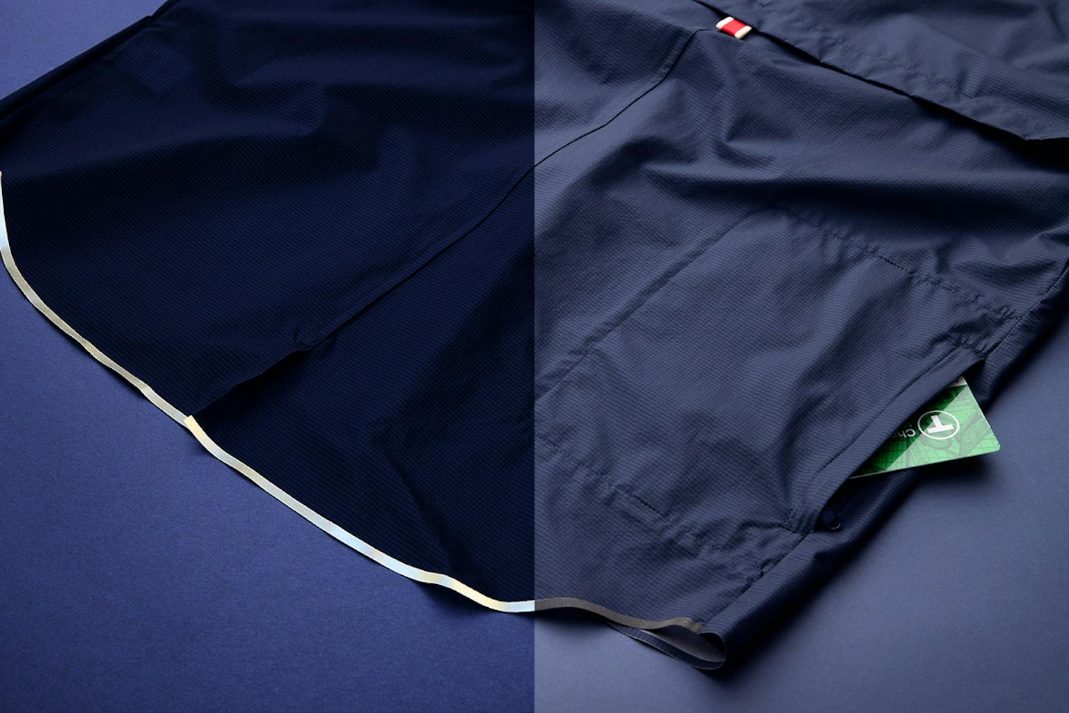 Rainy days are unprdedicatble. We designed this jacket to pack snuggly into an internal zippered pocket, which features an elastic hand strap to easily hold the packed jacket while running.