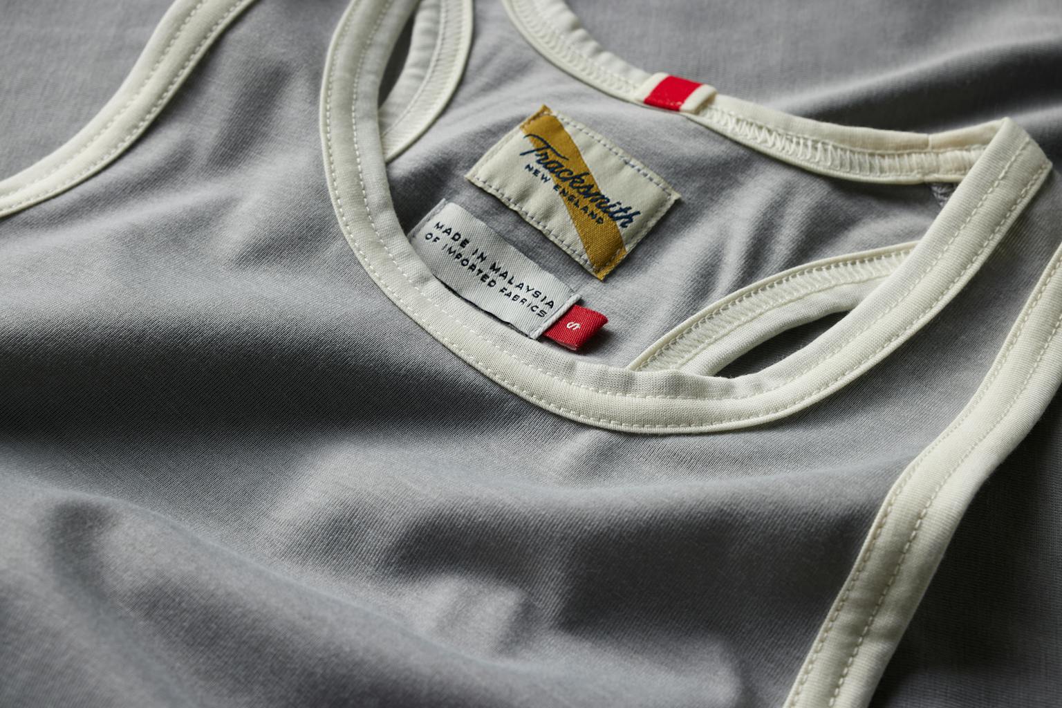 The beauty of this carefully considered tank is all in the details, from the soft piping at the neck and shoulders, to the embroidered Eliot Hare at the hip.