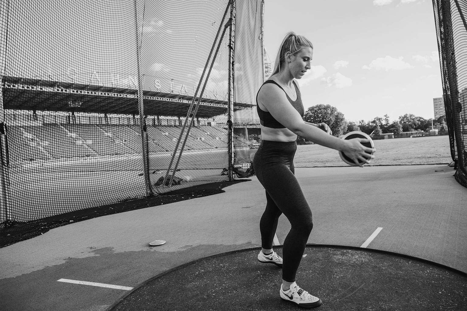 Olympian Rachel Dincoff tested the Session Bra during a workout in the gym and at the track. Sam Murphy put it through its paces in a series of 400s and 200s.