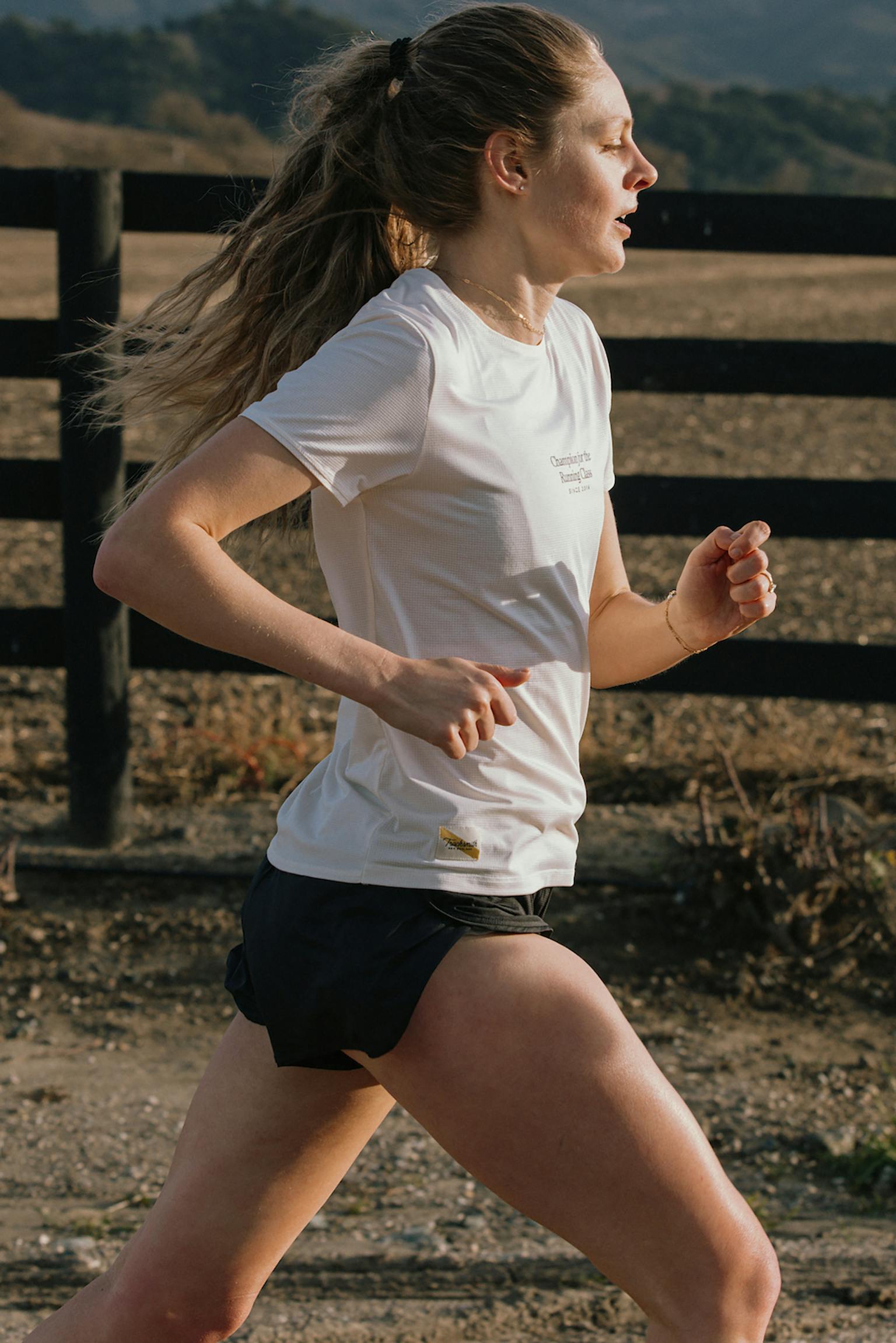 Our Twilight Tee is inspired by the twilight meets that have long been a staple of New England racing. These meets strip running down to its essence; competitors show up to the startline without affiliation, ditching the bright colors and giant logos so that the speed says it all. Our Twilight Tee reflects this understated intensity, crafted from a silky-smooth and light-as-air Italian fabric that feels incredibly cool against the skin. With high-speed stretch and a pared-back silhouette, it’s designed to let your kick – not your kit – do the talking.