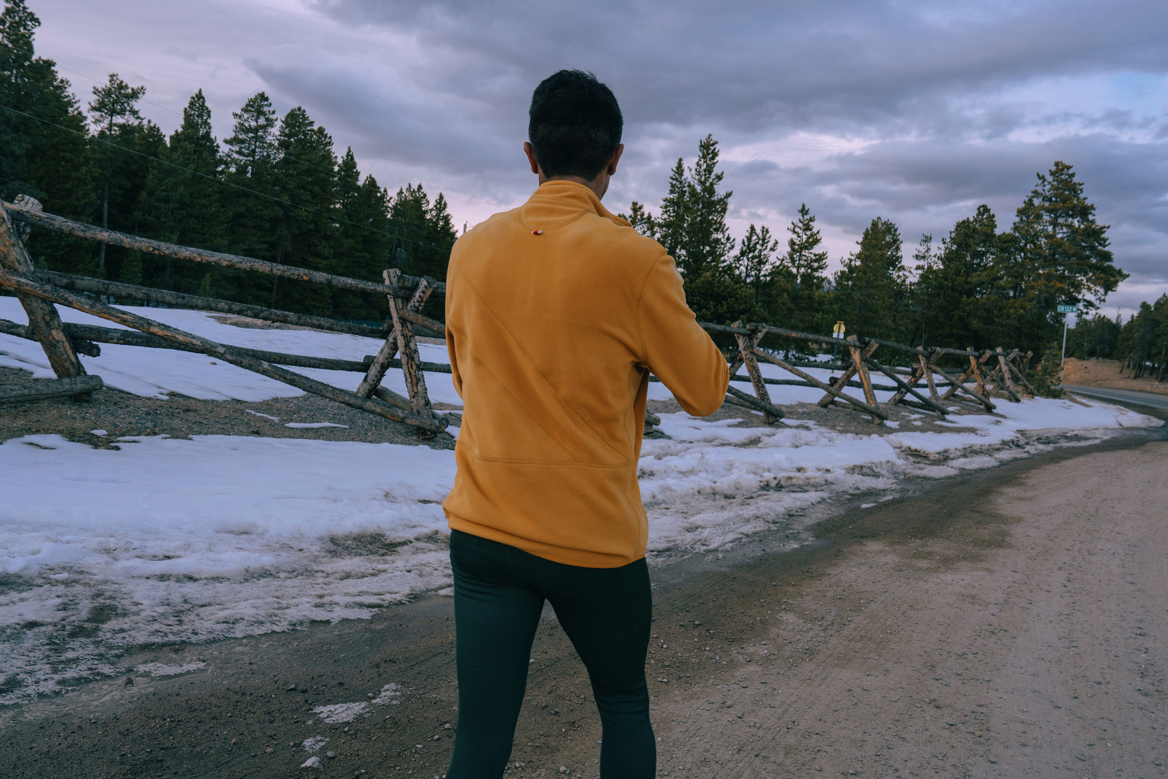 On a cold morning, the warmth of a cozy fleece can be all that gets you out the door. But problems arise when the pace quickens and your body heat rises since classic fleeces aren’t made for running fast. We designed the Franklin Quarter Snap with these varying conditions and thermal outputs in mind, mixing strategically mapped materials for zoned ventilation and weather protection. Thumb holes keep you warm when the run starts cold, and snap buttons deliver ventilation when the pace picks up.