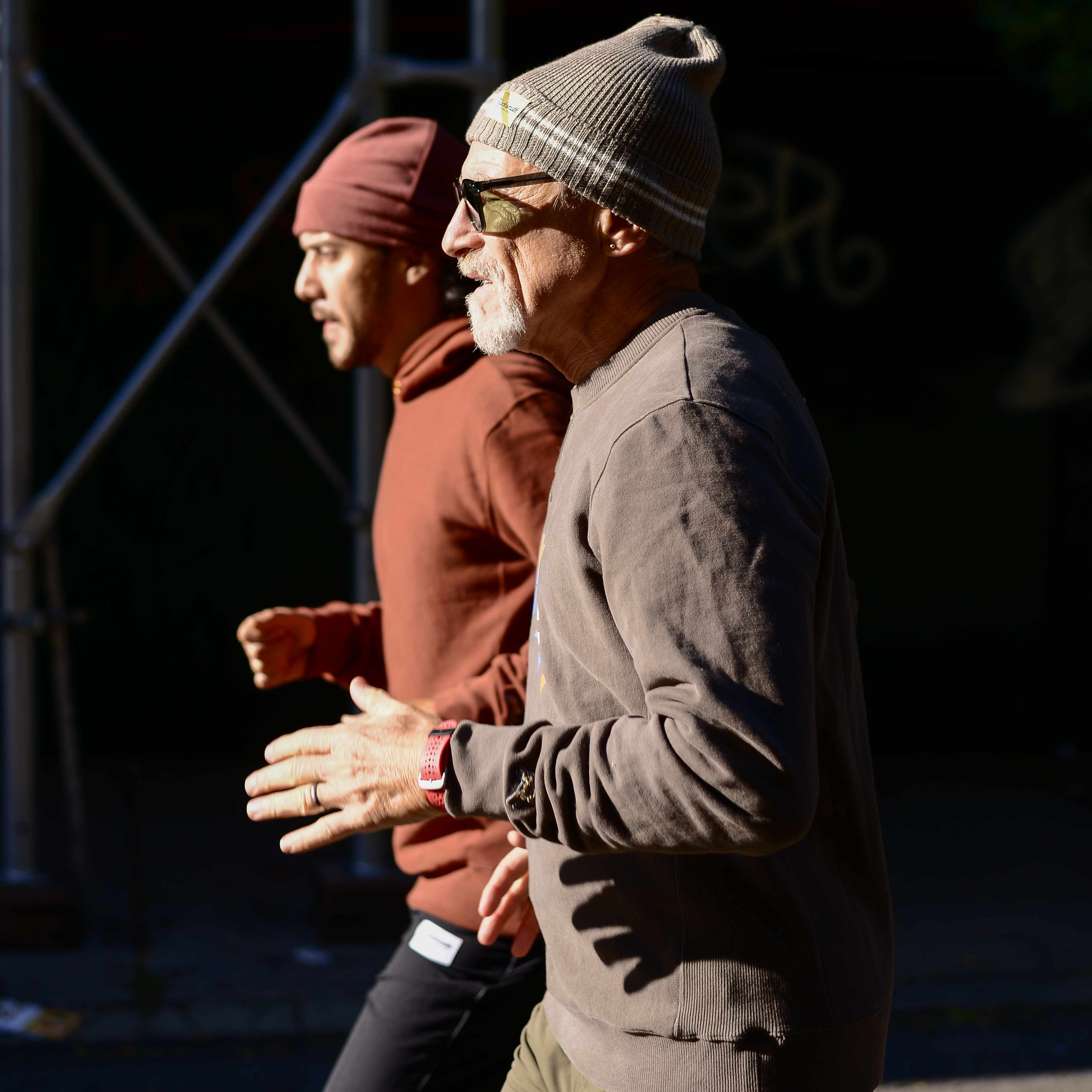 Reph: Yeah, Circa '95 was actually a rap group. Then we started running and thought, we already have this group, let’s bring running to the Hip Hop community, to our Washington Heights neighborhood. We started running to interesting food places, like Patsy's Pizza. It’s a way of exploring the community. Then we were exposed to We Run Uptown. And were like, ‘Oh, there’s a running group uptown? Started by young people?’ Part of our mission is how we can support other people who do the same work. We clicked with them and we've been supporting them for nine years. Like my dad was saying, this non competitiveness kind of spirit. All paces, all faces.
