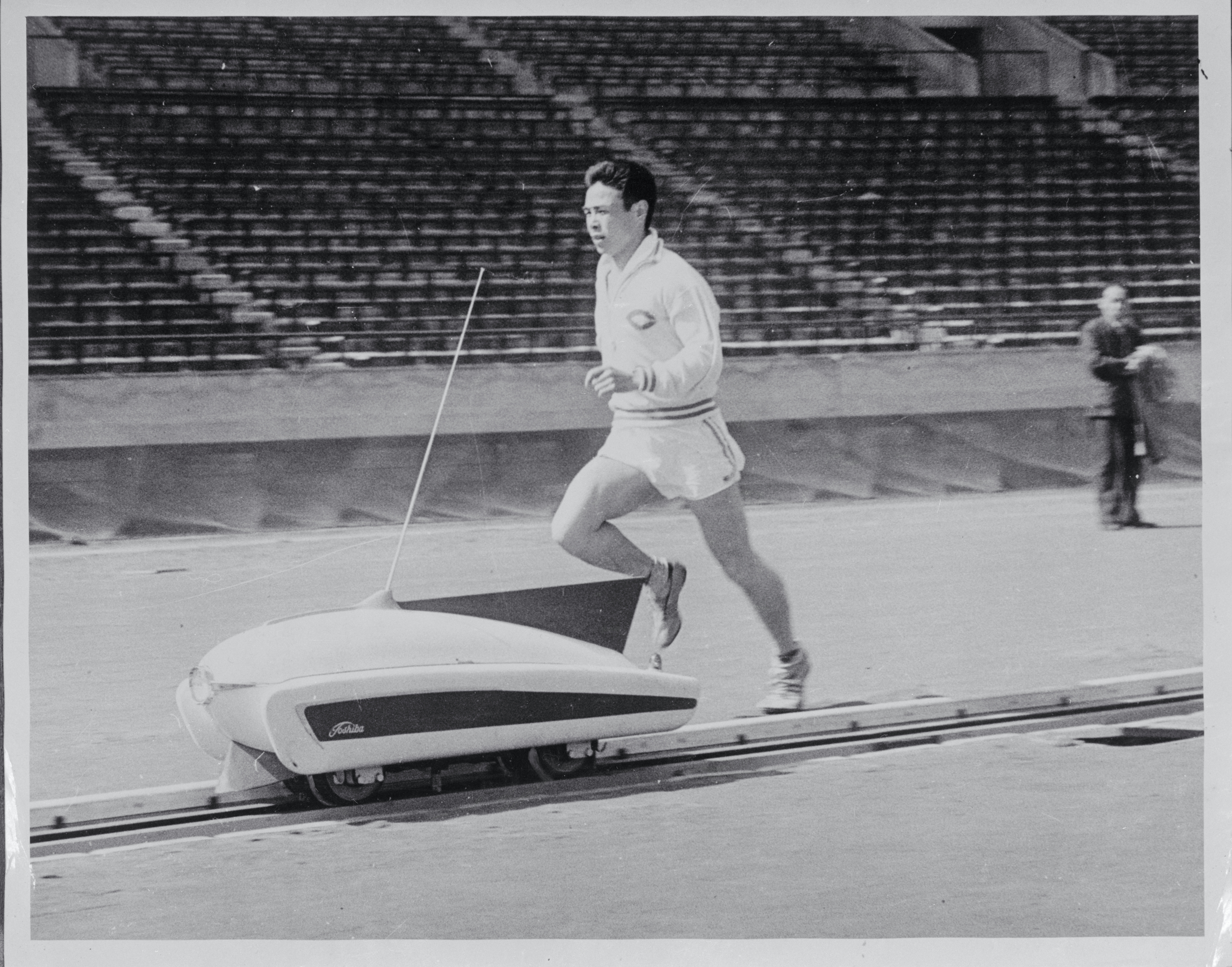 Knowing he had to whip around the final lap in 59 seconds, Bannister cut loose from Chataway with 300 yards remaining. His hair flapped as his 6-foot-2 frame appeared effortlessly in motion. Bannister leapt at the tape to cross the finish line in 3:59.4 then collapsed nearly unconscious. Still alive.