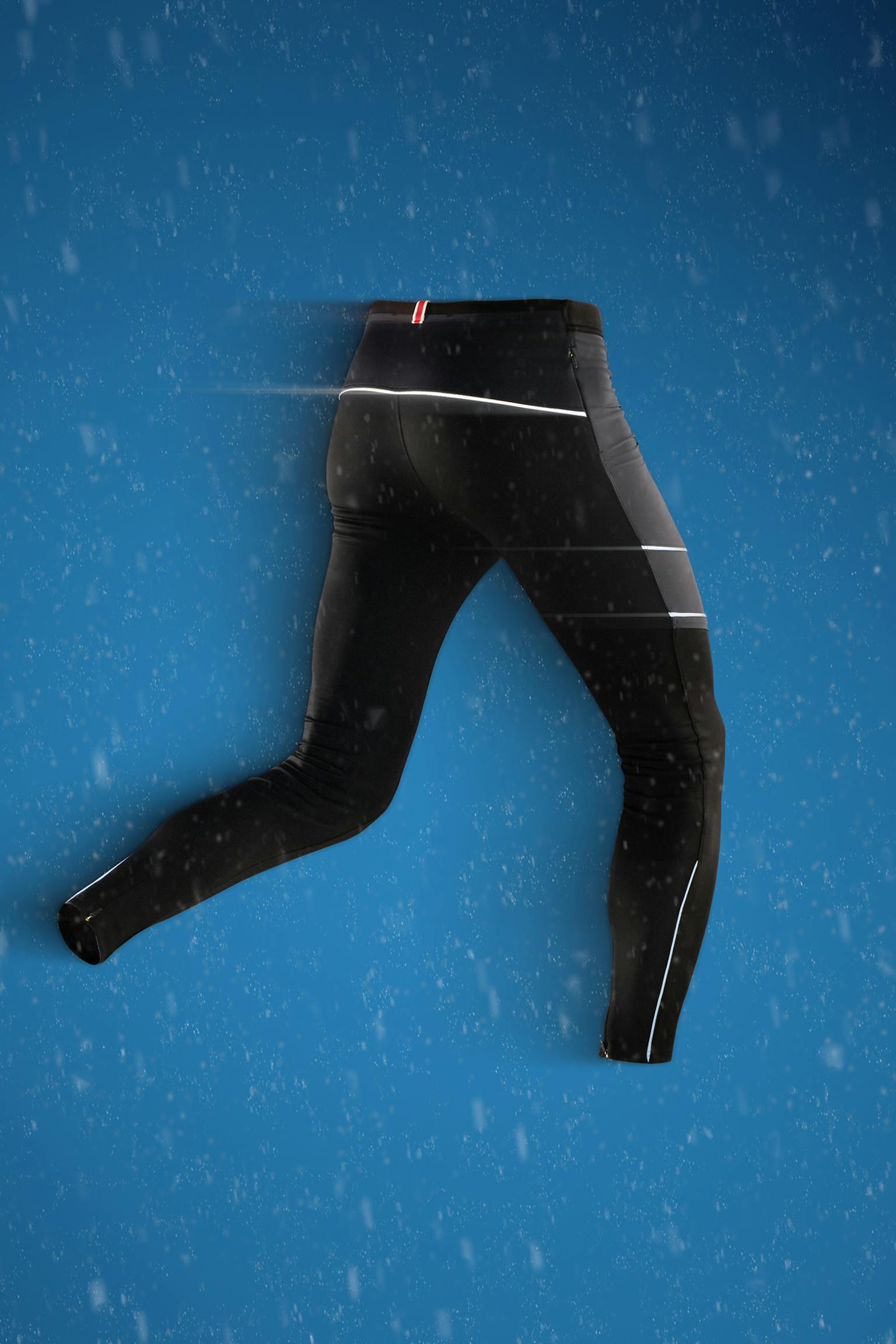 Winter running tights engineered from a double-knit Merino blend with wind-blocking overlays and reflective piping