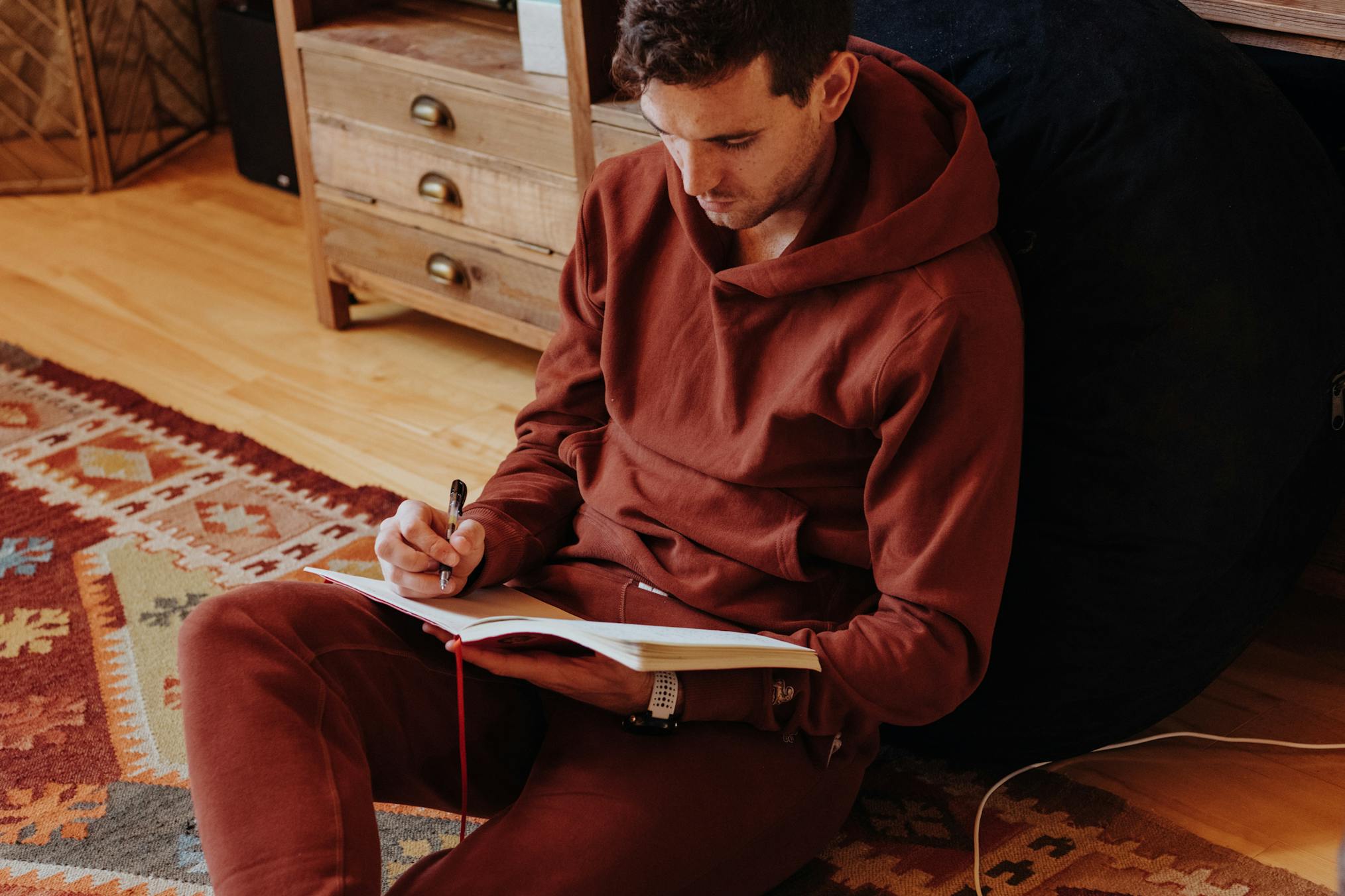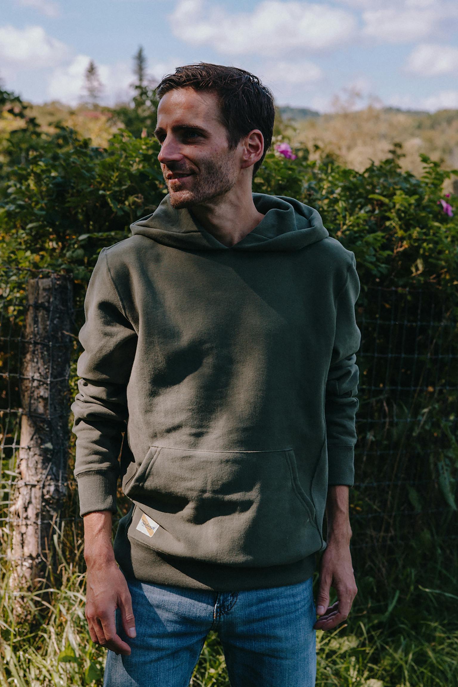 - A relaxed fitting hoodie sweatshirt that’s perfect to lounge in and gets better with age. For the utmost comfort, we nixed the drawstrings, not only to eliminate their bouncing around but also to reinforce the lived-in feel.