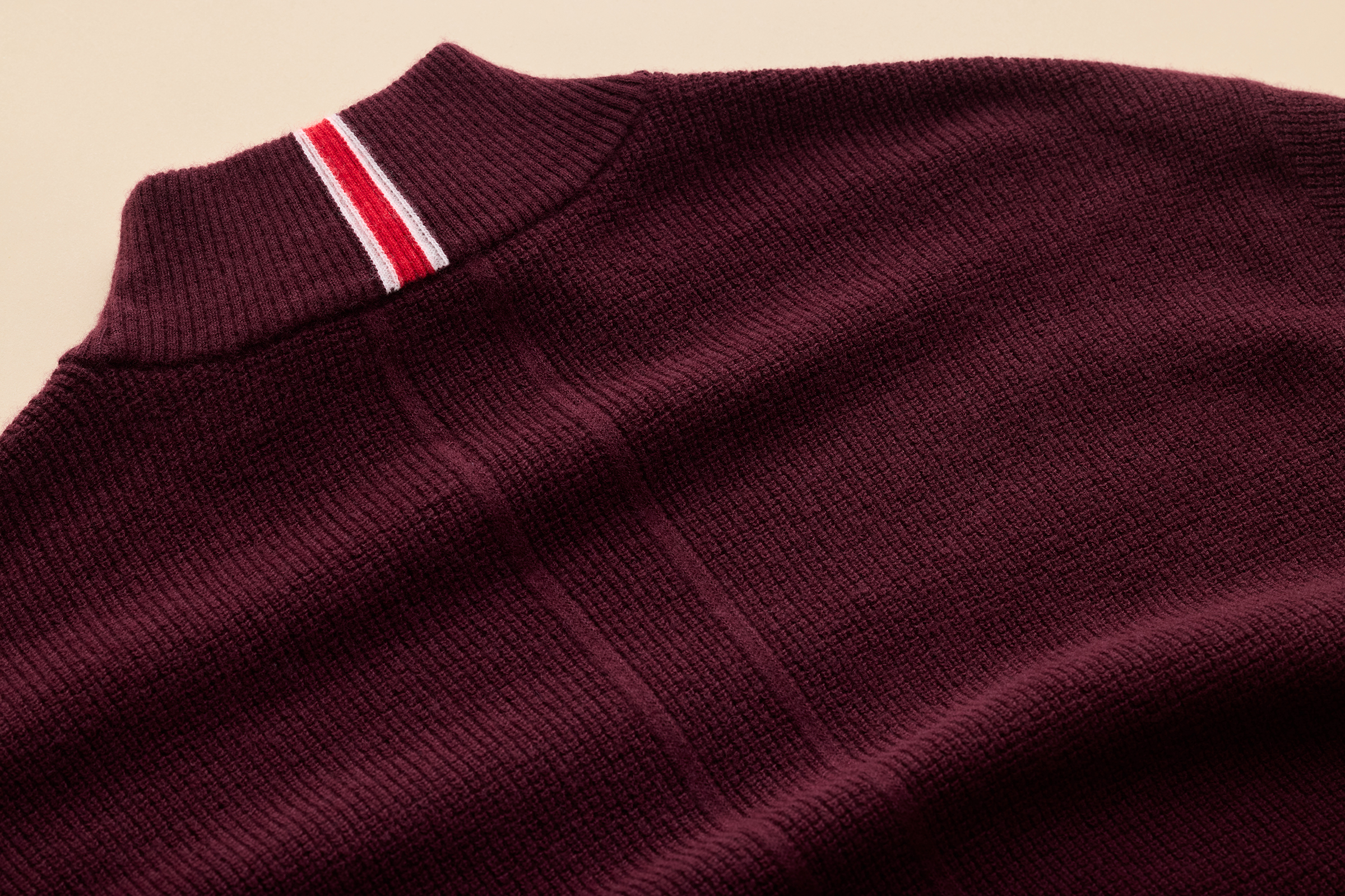 • Racing stripe jacquard on the back collar
