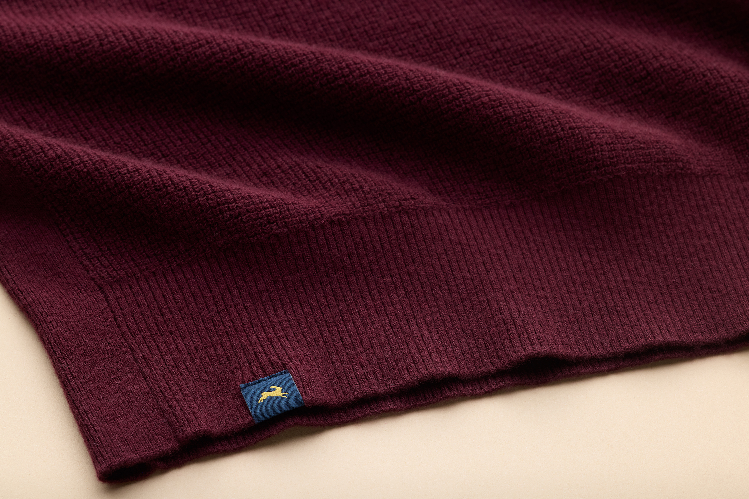 An all-over waffle knit adds texture and breathability, while our signature sash is stitched in jersey. Ribbing at the mockneck collar, cuffs, and hem, plus side and elbow panels, enhances the sweater’s durability and will keep it from losing its shape over time.